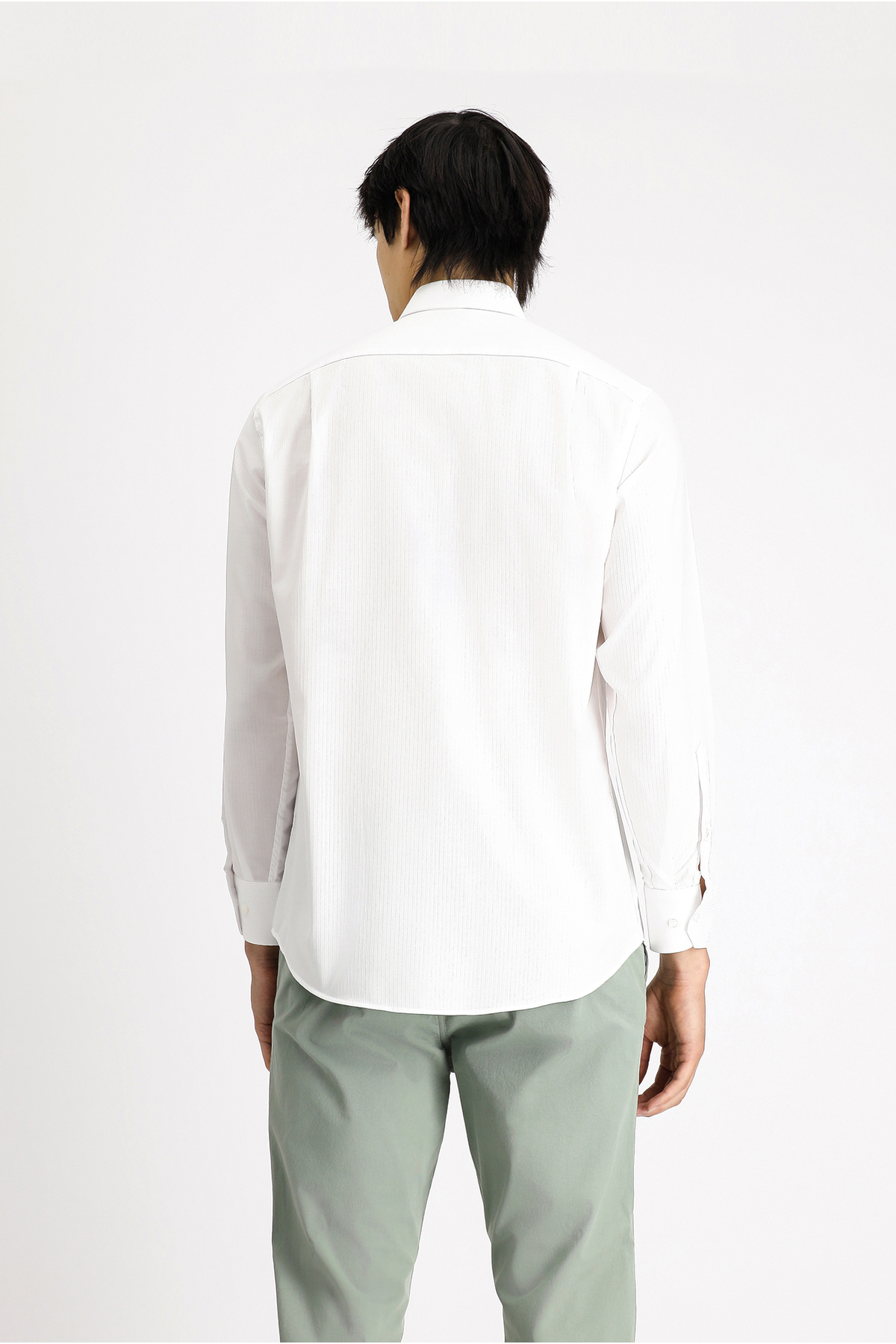 پیراهن نخی طرحدار کلاسیک آستین بلند بدون اتو