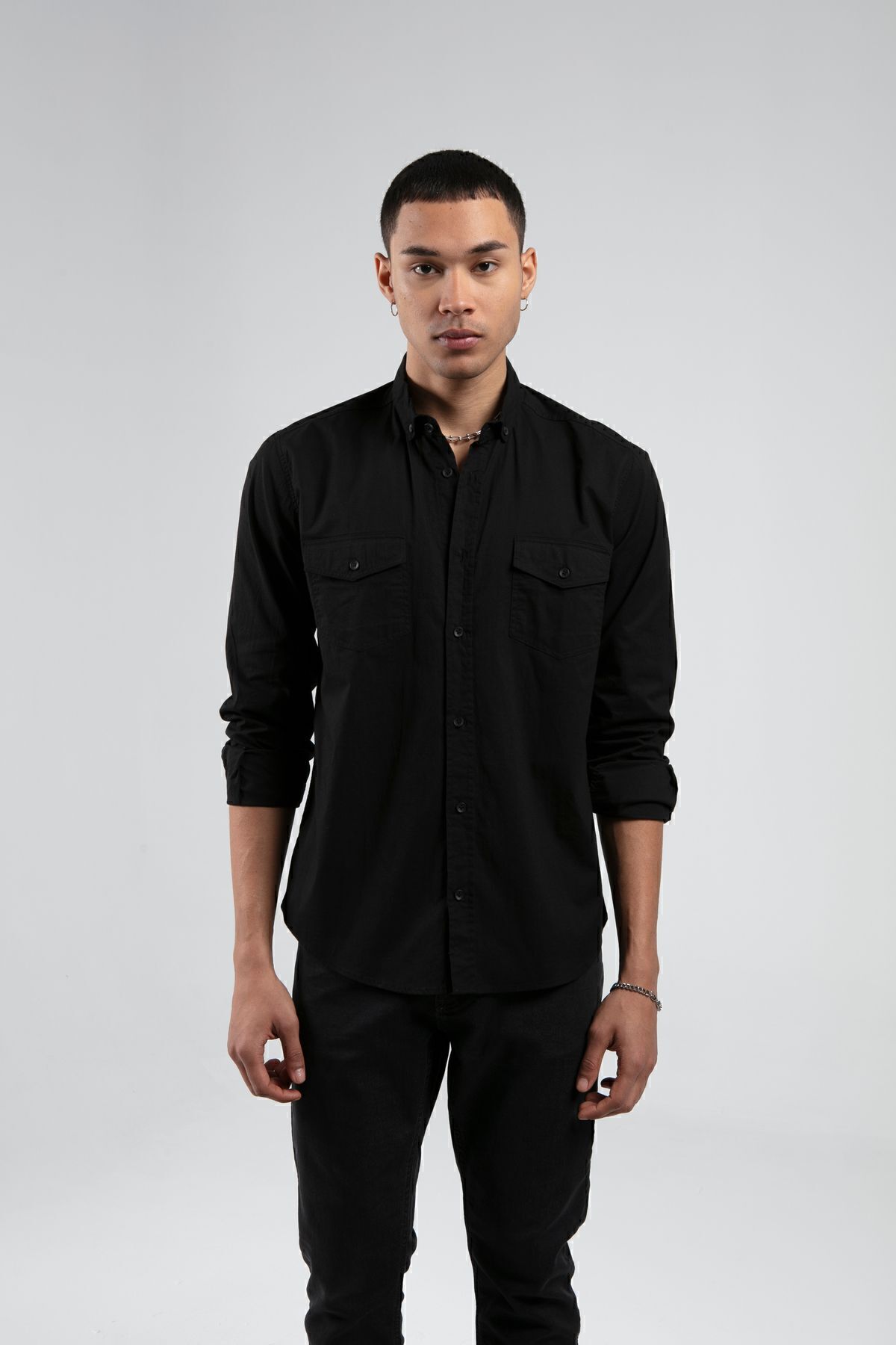 پیراهن مردانه مشکی اسلیم فیت با دو جیب | EE1008783-8783