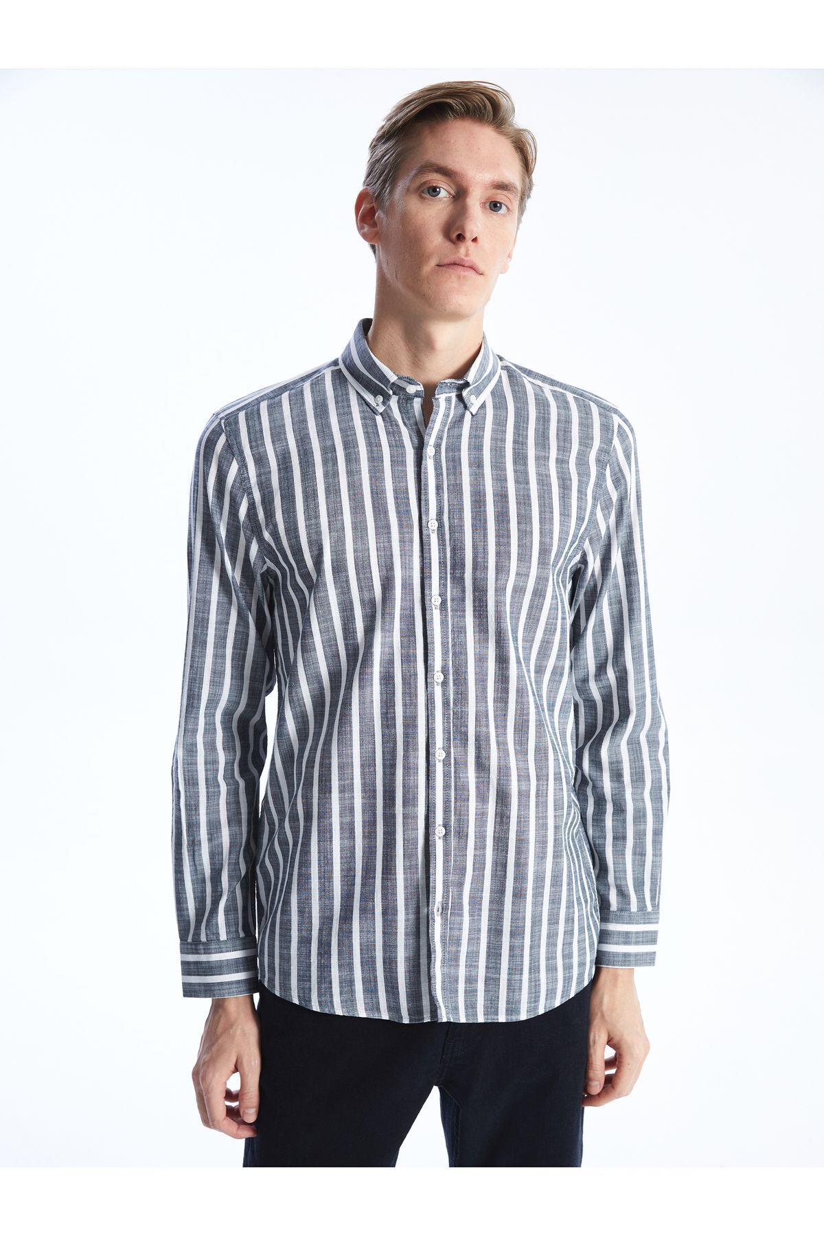 پیراهن مردانه پوپلین راه راه آستین بلند اسلیم فیت