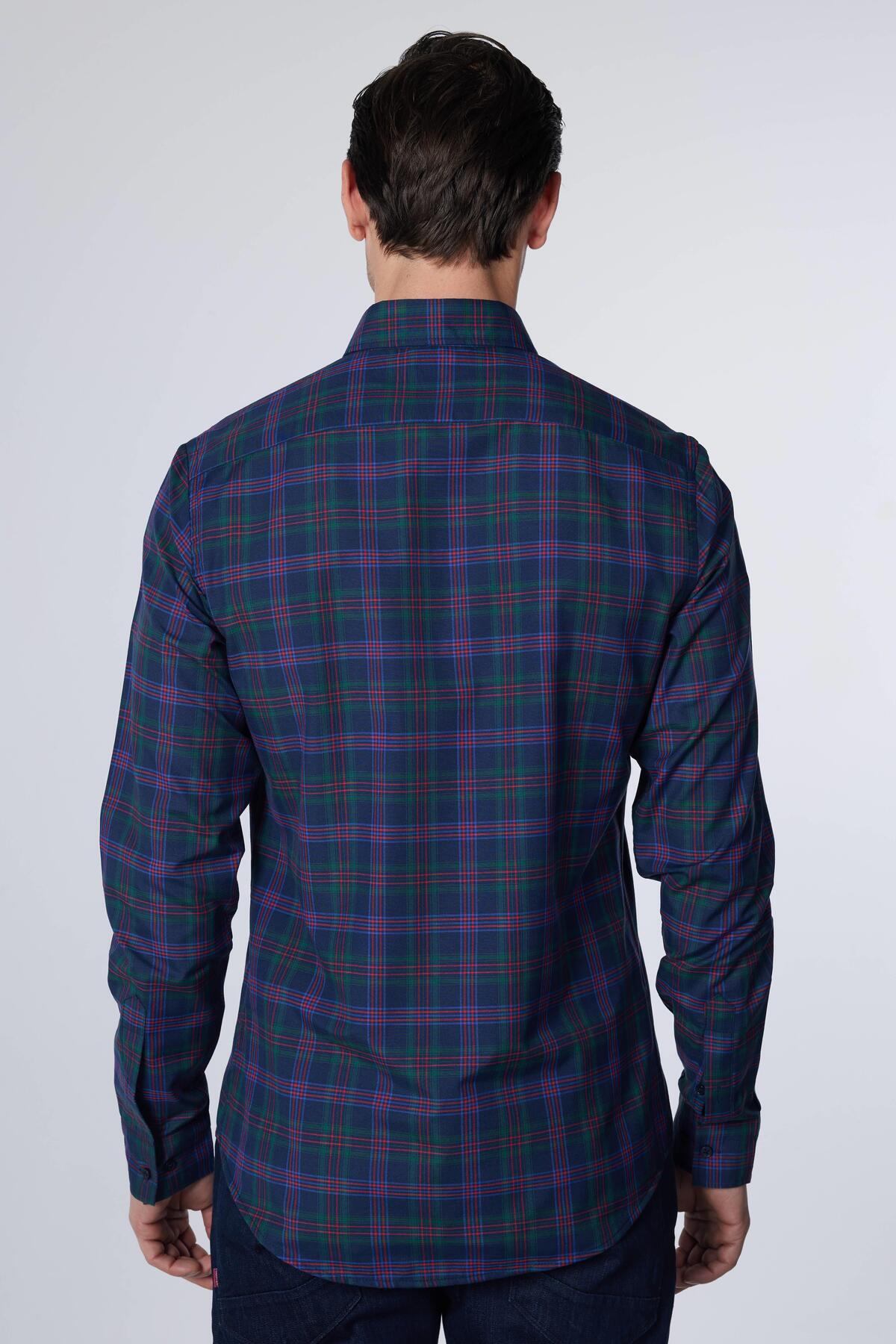 پیراهن مردانه اسلیم فیت، برش باریک، آستین بلند، نخی، اتوکشی آسان، چهارخانه دکمهدار