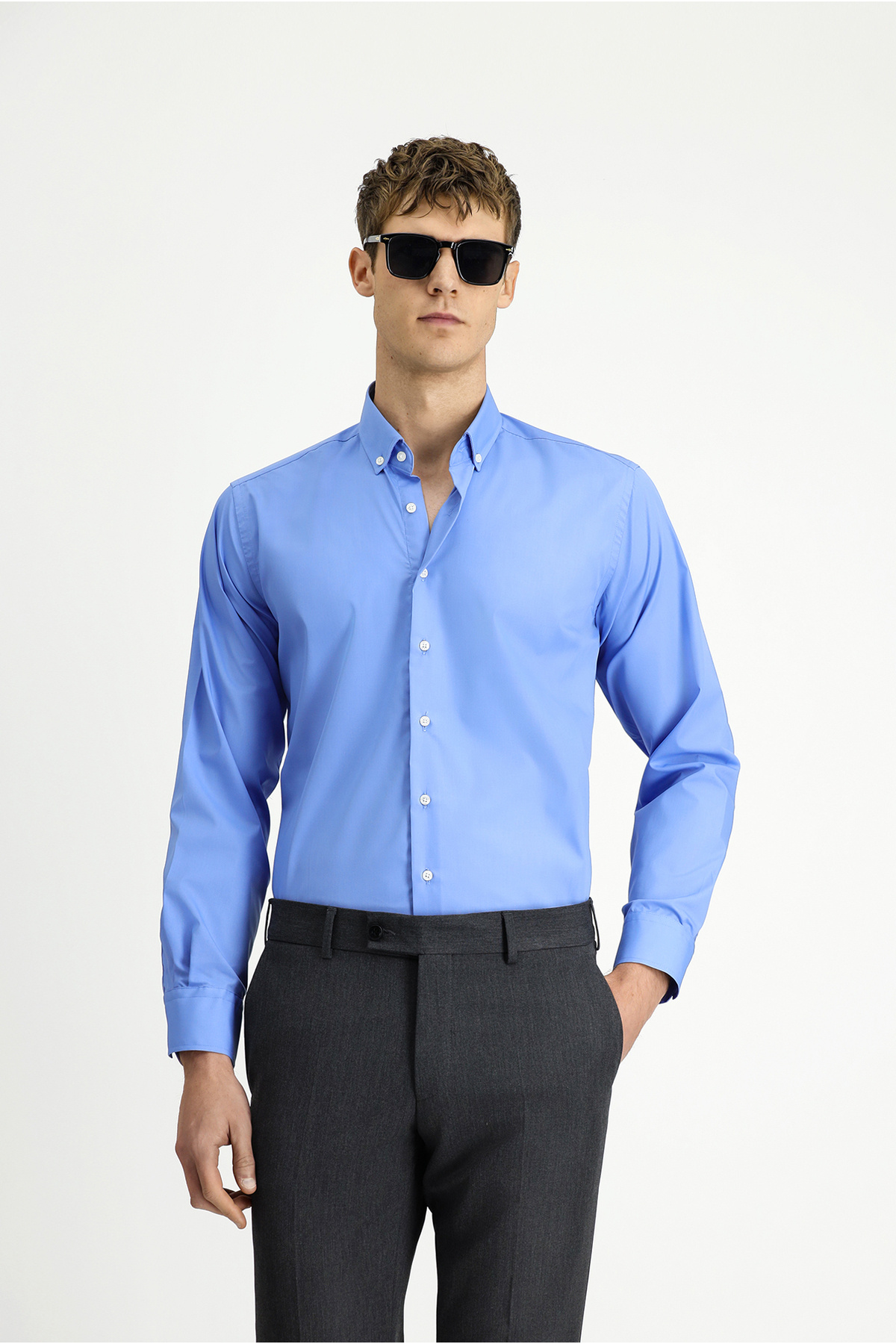 پیراهن آستین بلند نخی دکمهدار معمولی بدون اتو