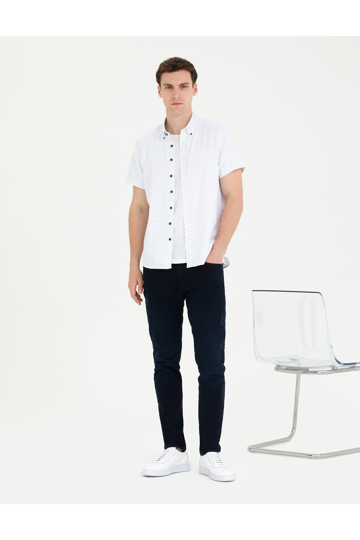 پیراهن پیرکاردین آبی سرمه ای آستین کوتاه پنبه – پلی استر | | نمایندگی پیرکاردین