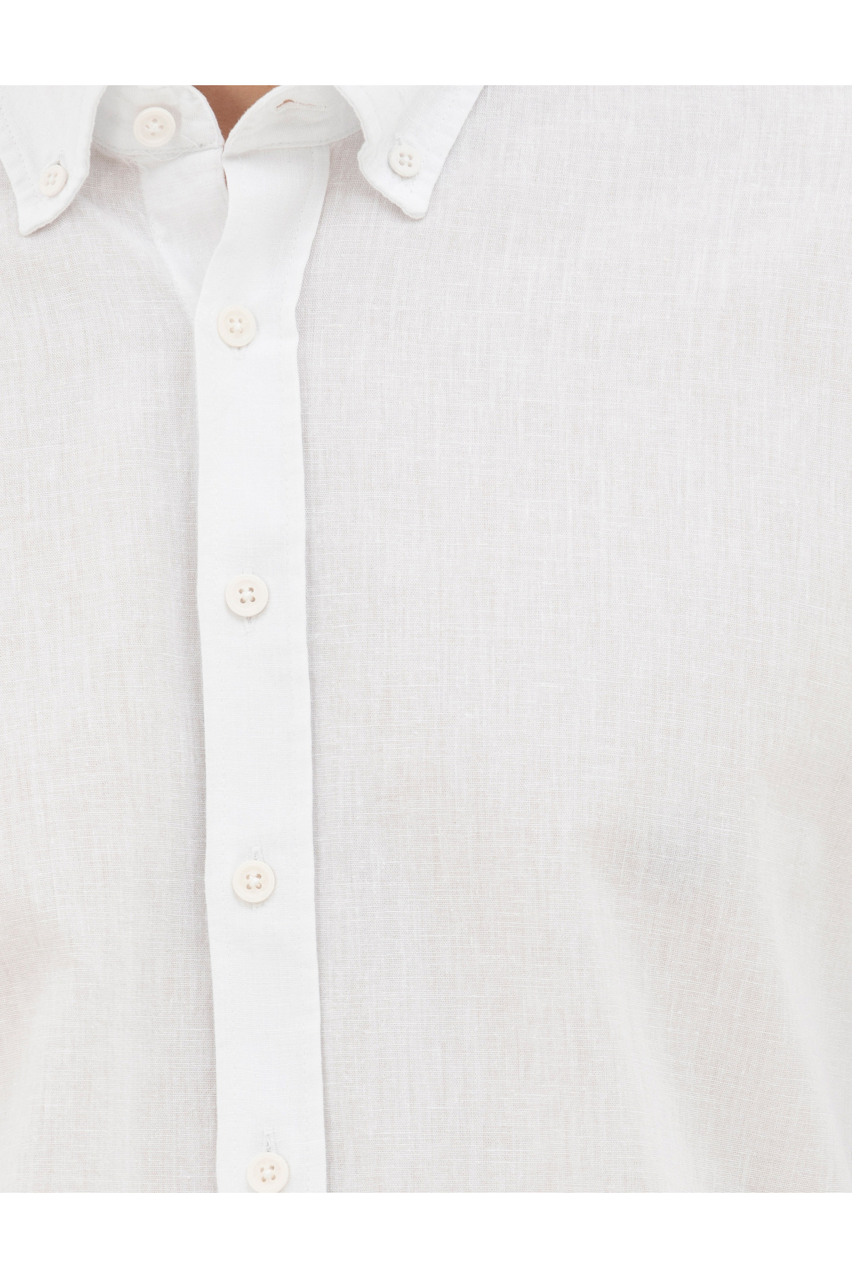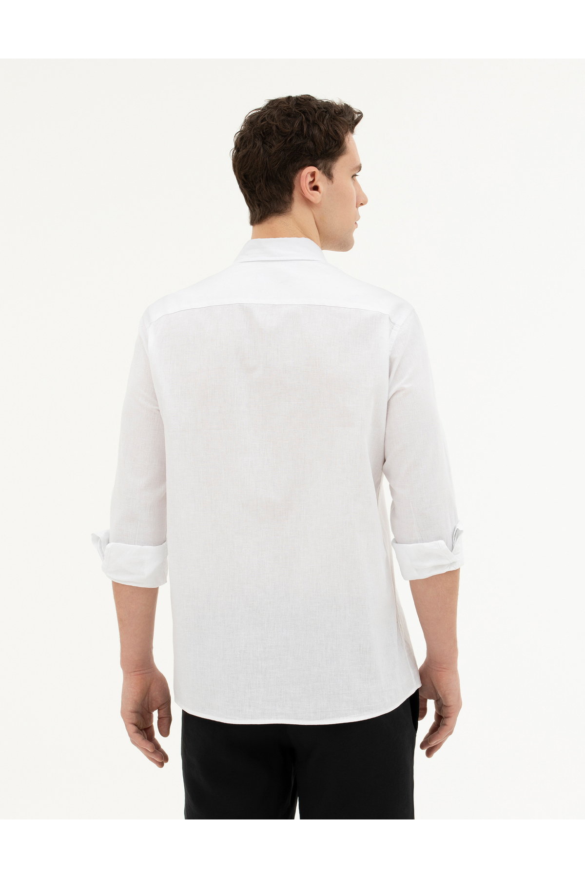 پیراهن آستین بلند سفید طرح کتانی معمولی کد ۵۰۲۸۴۱۶۸-VR013