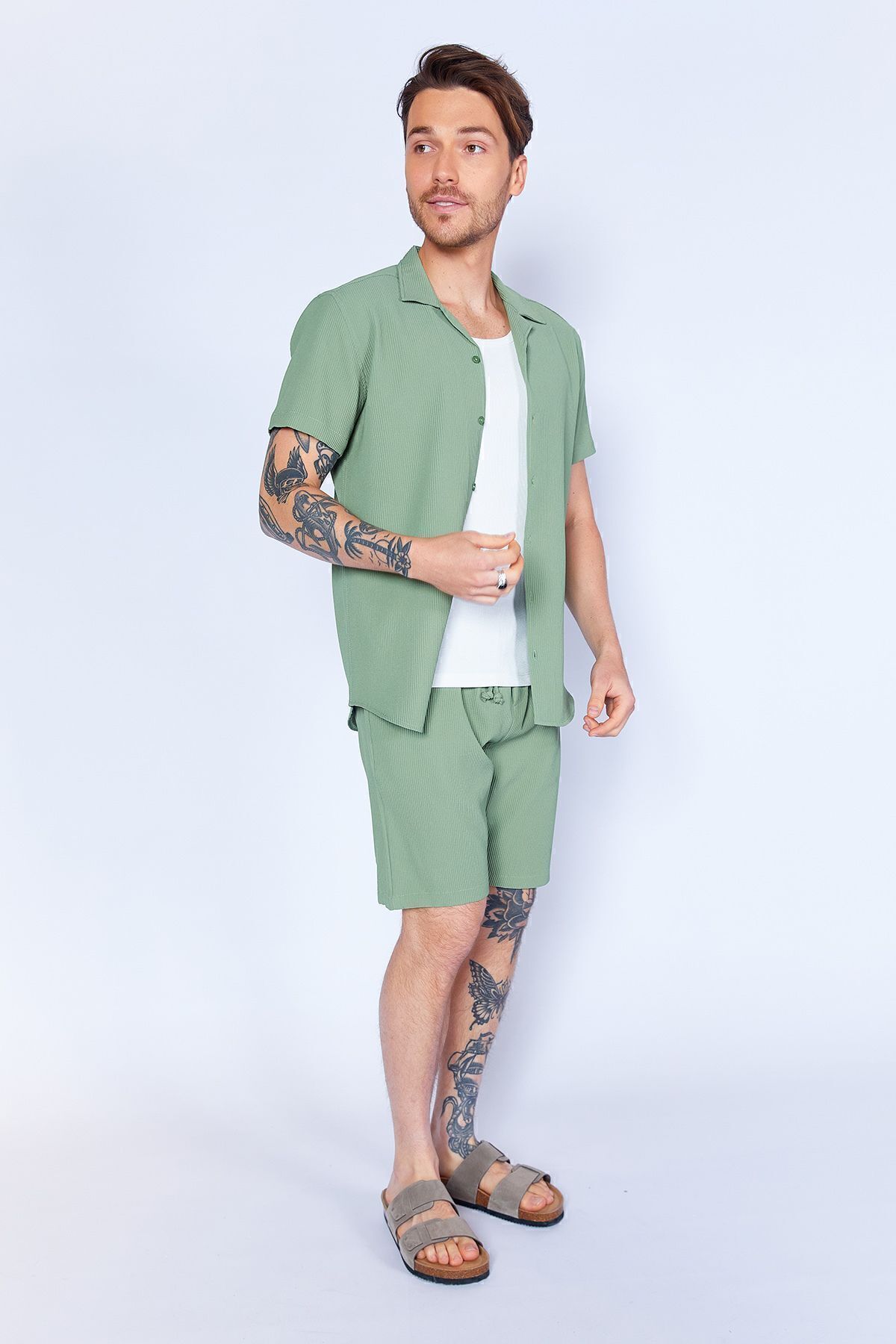 پیراهن مردانه آستین کوتاه یقه آپاچی انعطافپذیر چاغلا عثمانی بافتدار | Ee100117839-7839