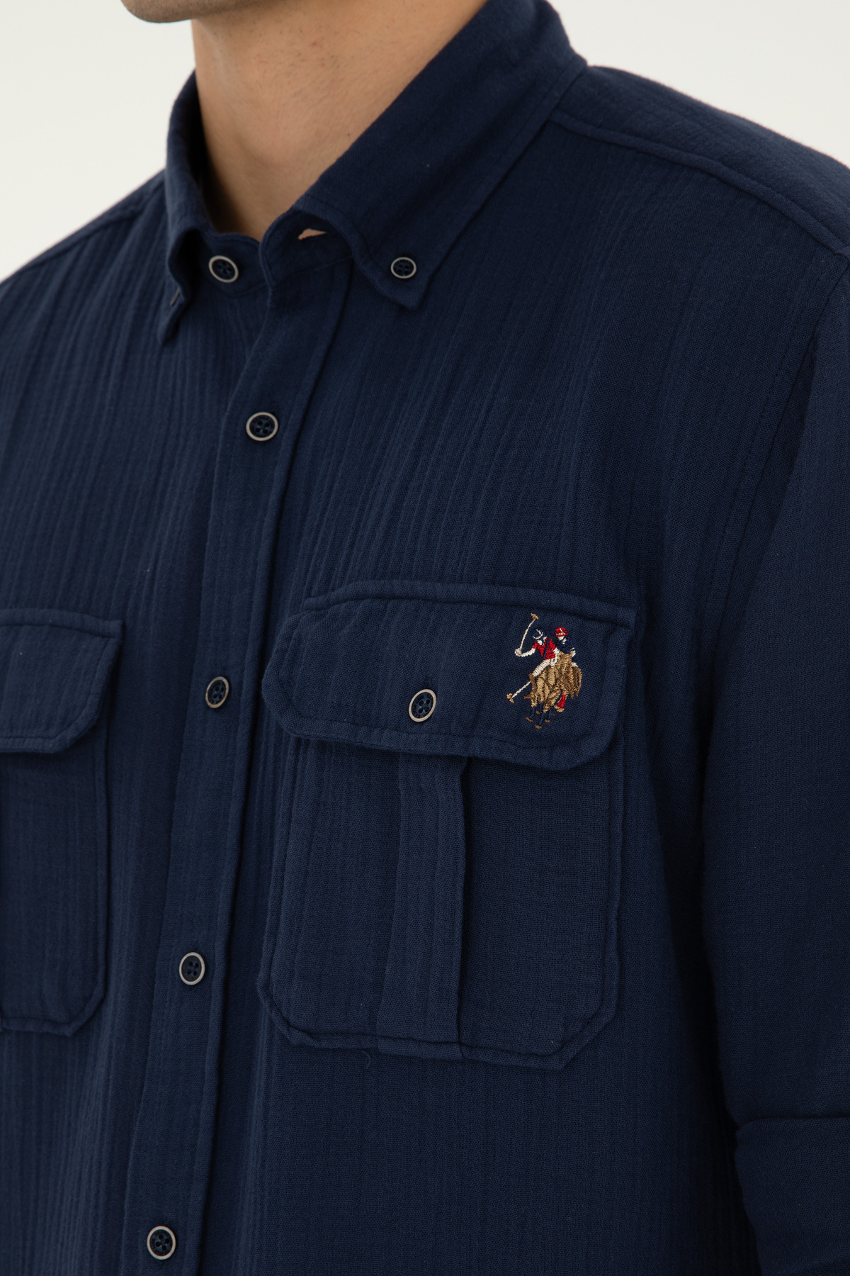 پیراهن یو اس پولو آبی سرمه ای آستین بلند کتان پنبه ای | | نمایندگی یو اس پولو