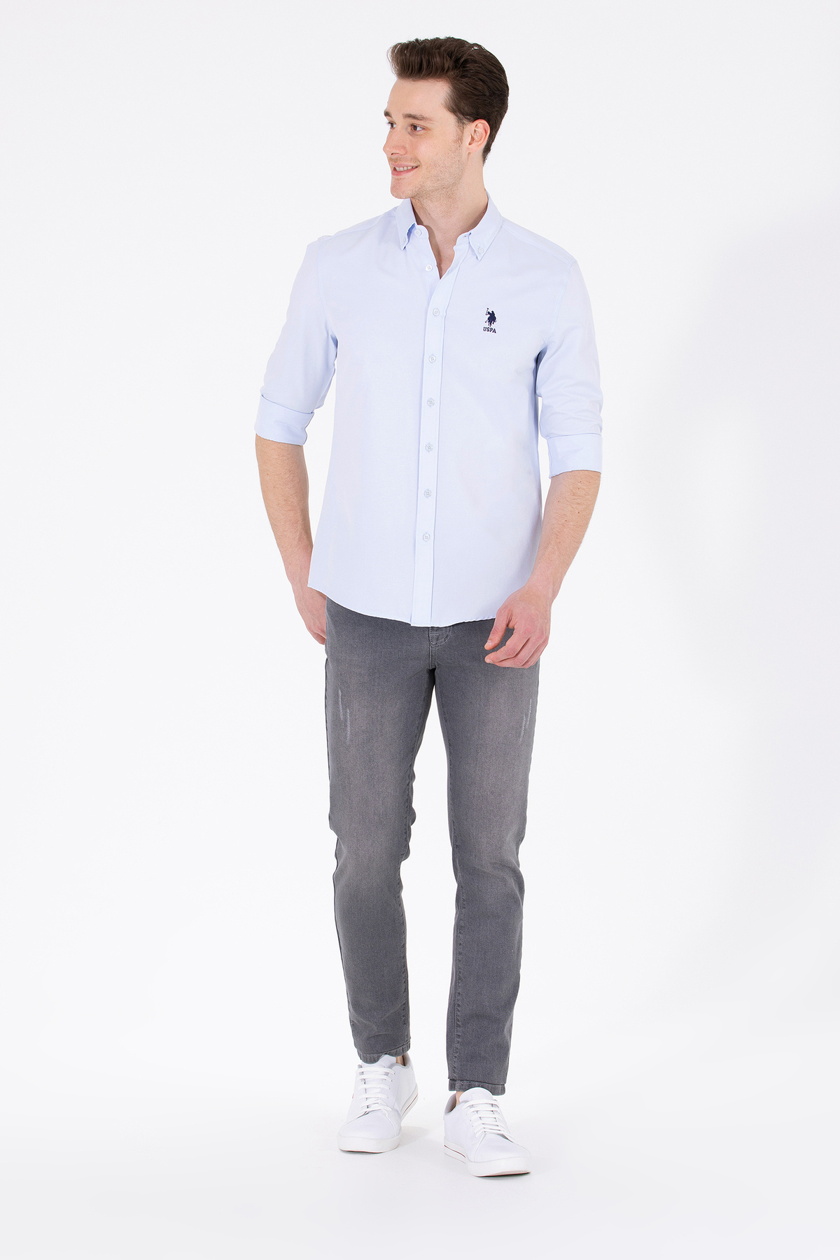 پیراهن یو اس پولو آبی آستین بلند منسوجات | | نمایندگی یو اس پولو