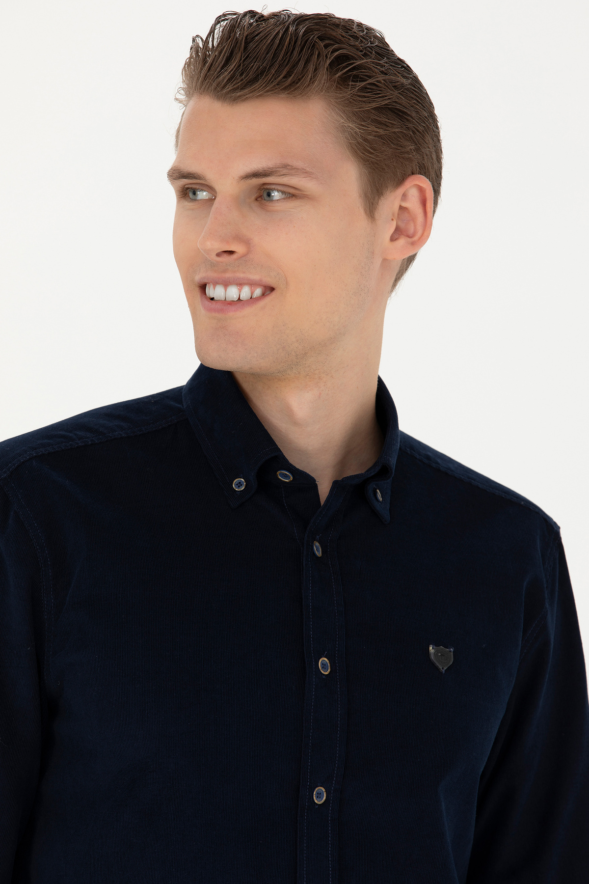 پیراهن یو اس پولو آبی سرمه ای آستین بلند منسوجات | | نمایندگی یو اس پولو
