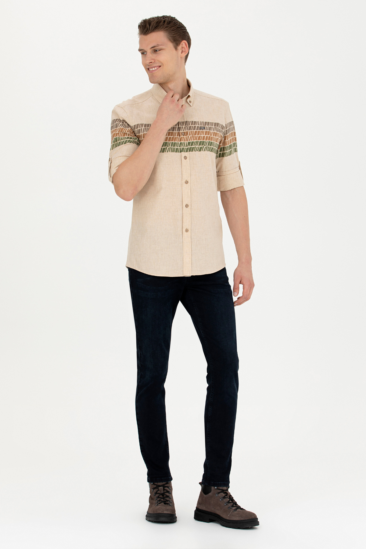 پیراهن آستین بلند مردانه بژ 50272705-VR011