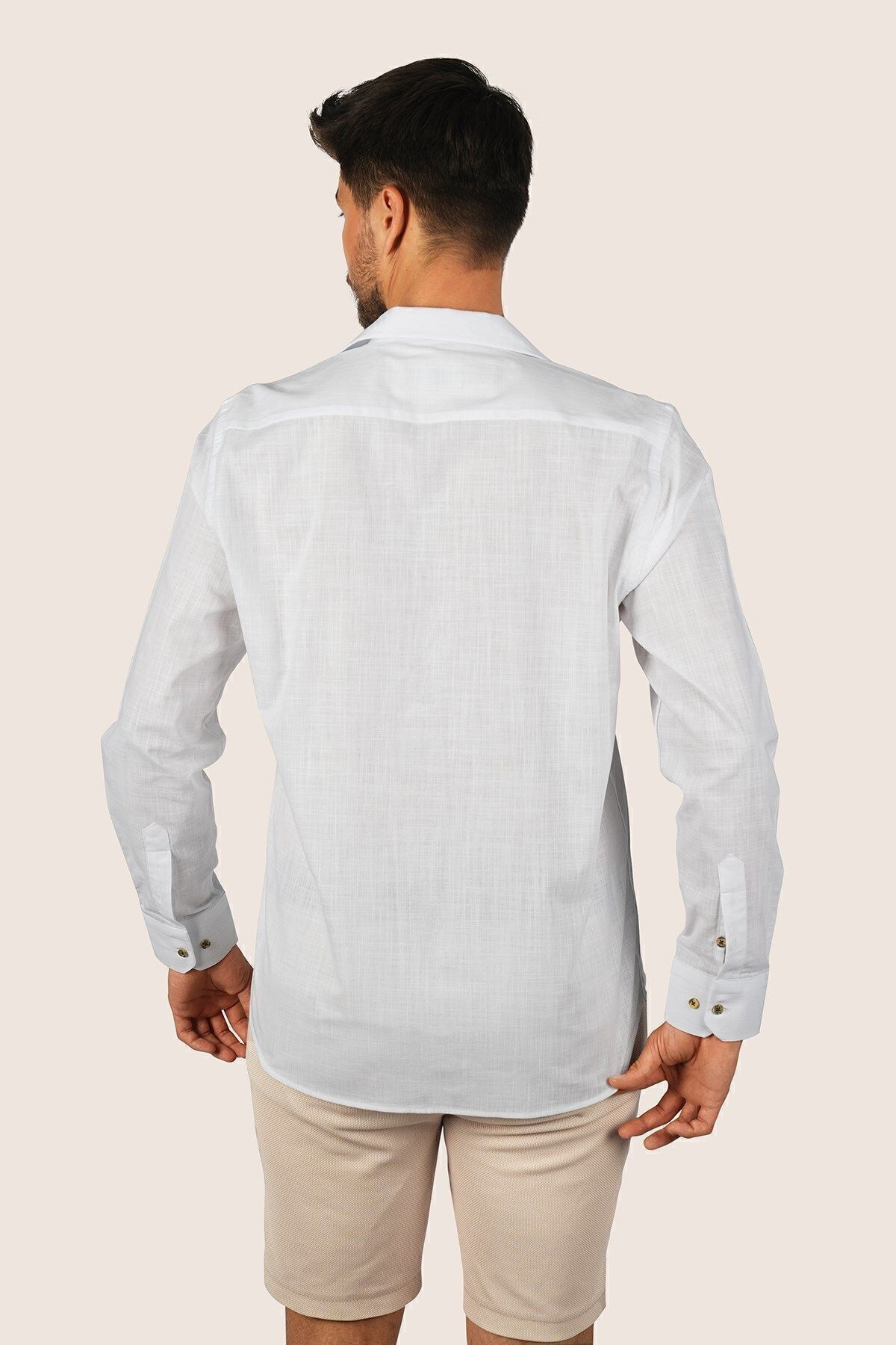 پیراهن مردانه سایز بزرگ یقه آپاج کتان سفید