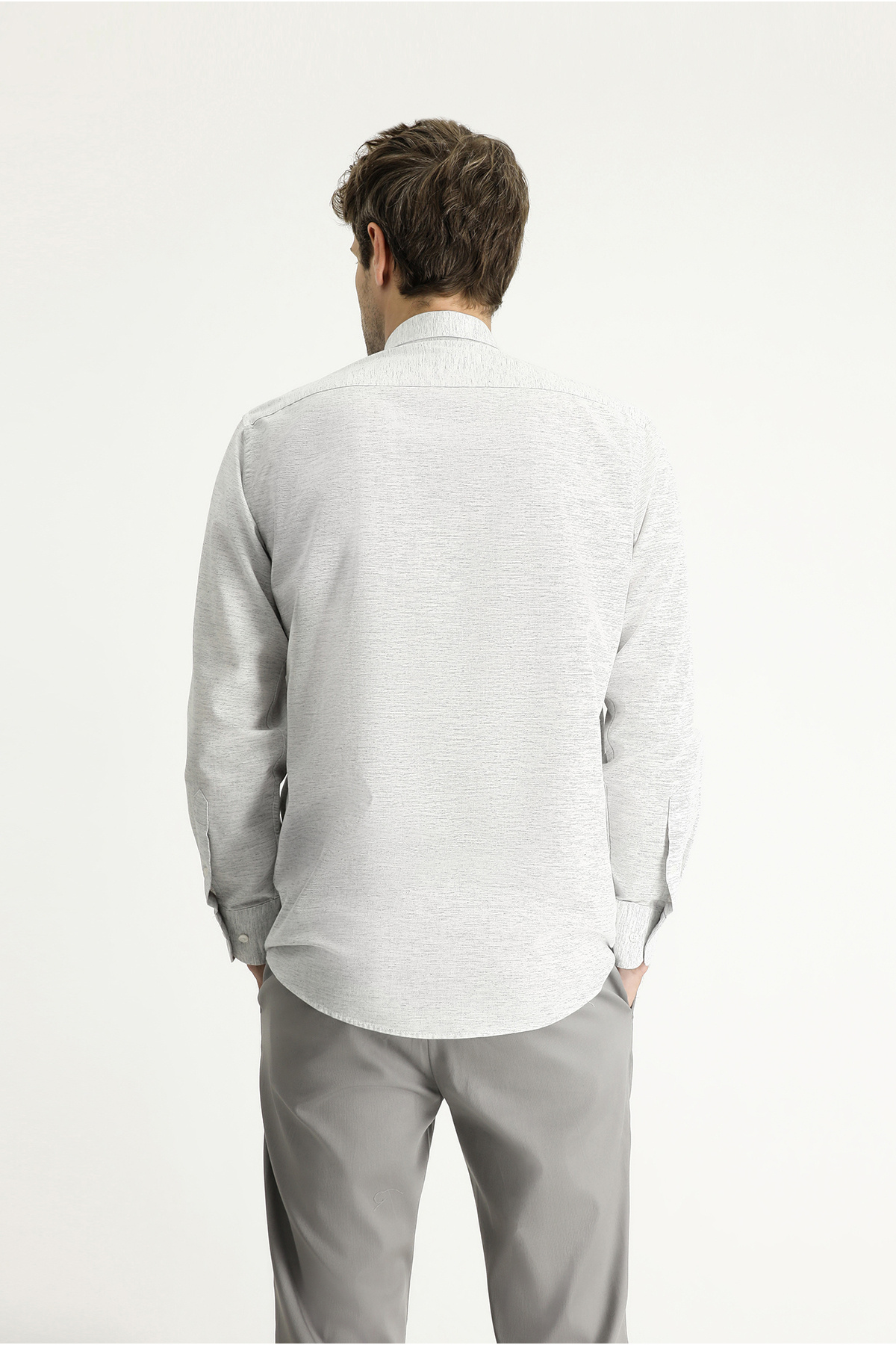 پیراهن نخی اسپرت آستین بلند طرحدار یقه دکمهدار معمولی