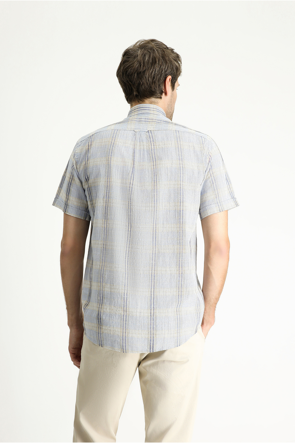 پیراهن آستین کوتاه چهارخانه اسپرت نخی دکمهدار