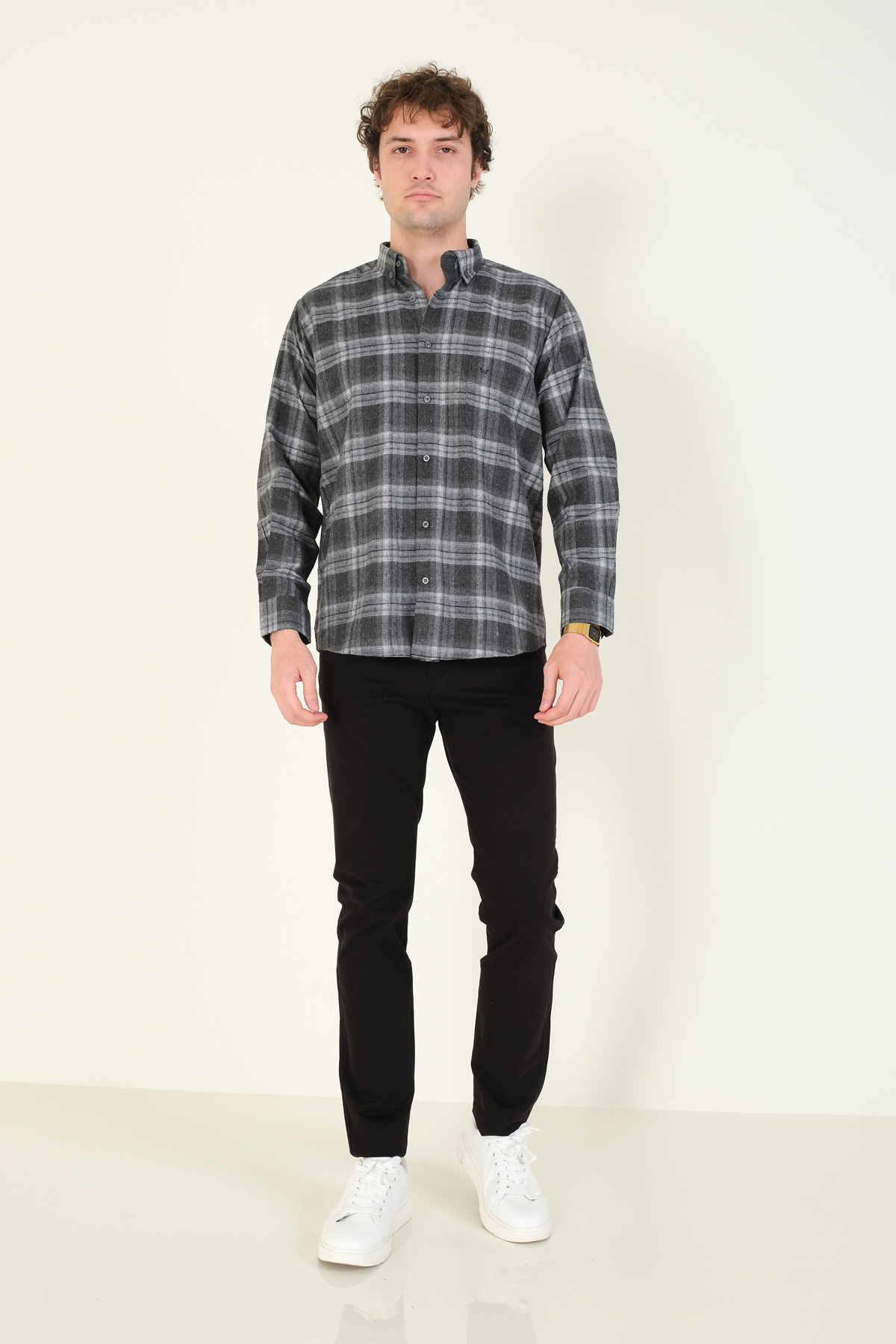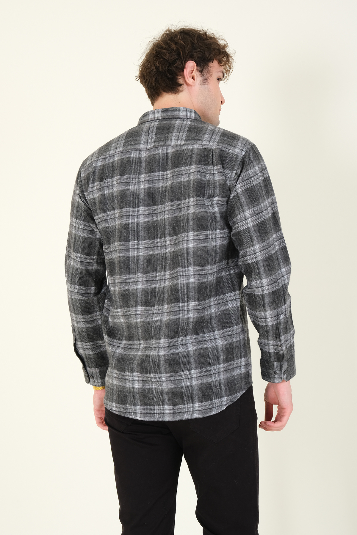 پیراهن مردانه تک جیب چهارخانه زمستانی به رنگ آنتراسیت