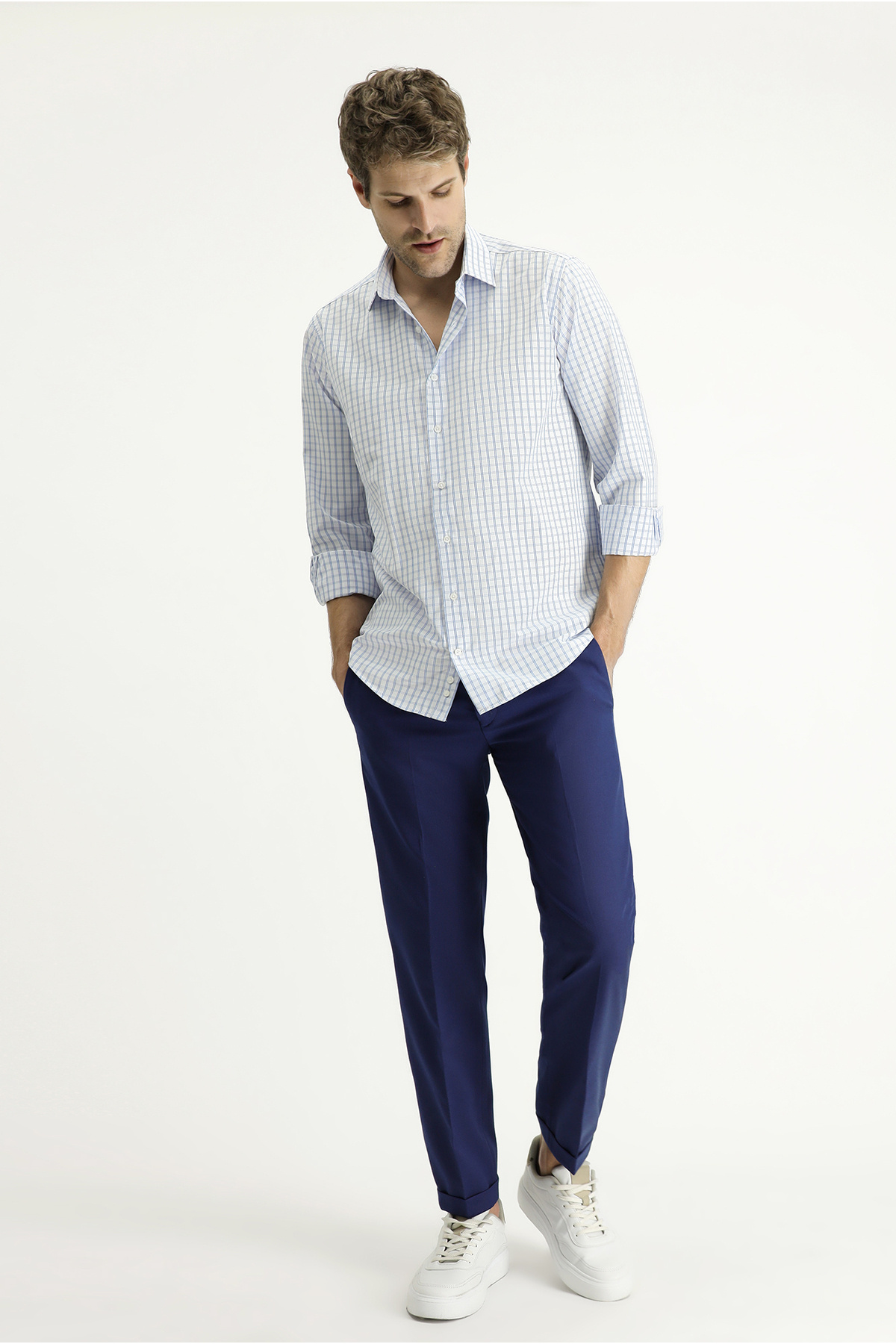 پیراهن نخی چهارخانه، آستین بلند، فیت معمولی، اتوکشی آسان.