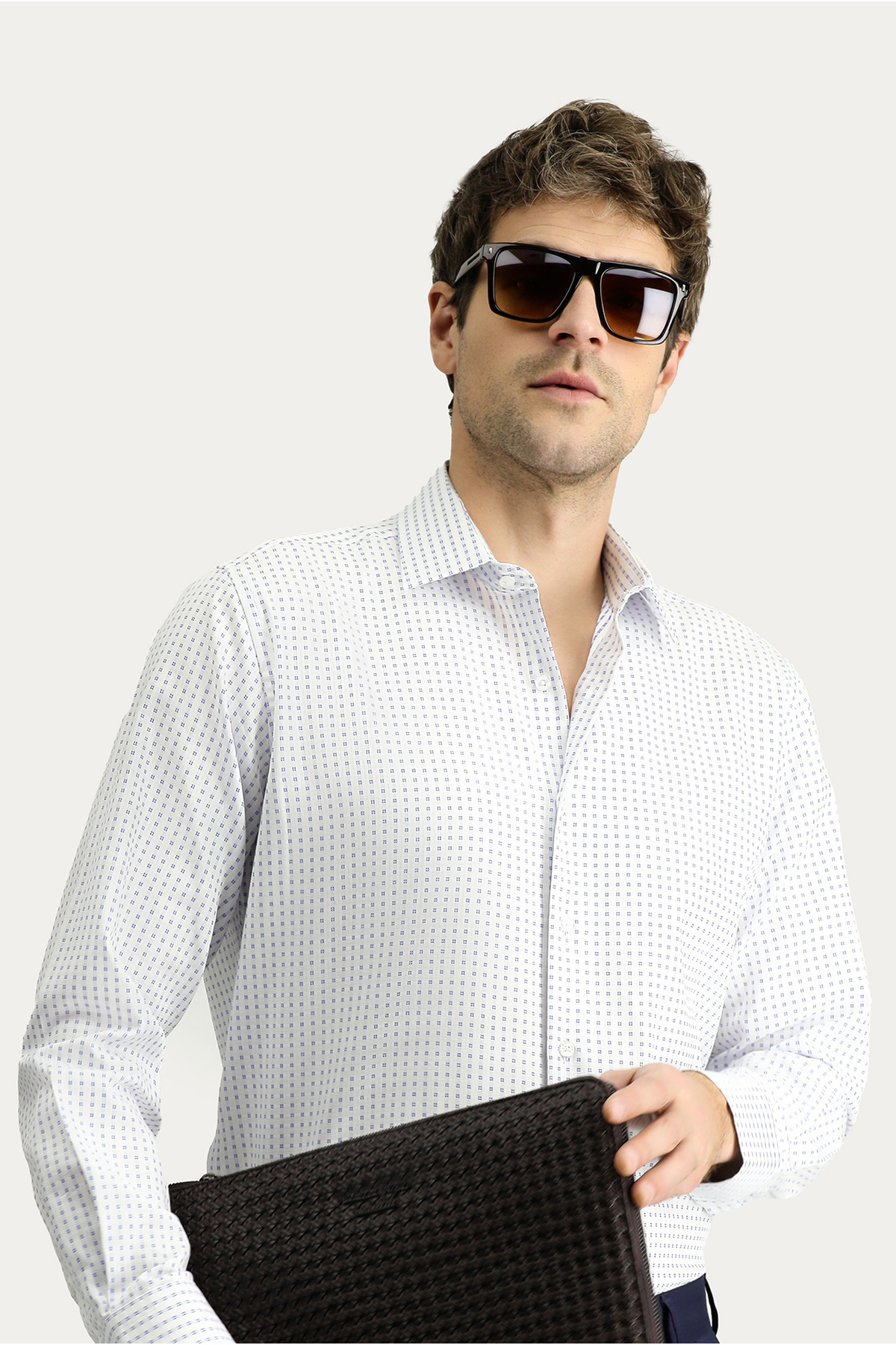 پیراهن نخی طرحدار کلاسیک آستین بلند