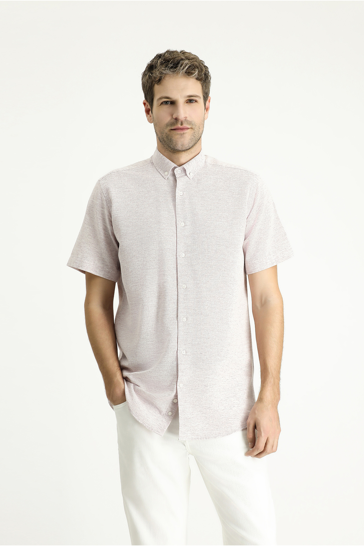 پیراهن ورزشی نخی طرحدار، آستین کوتاه، فیت معمولی.