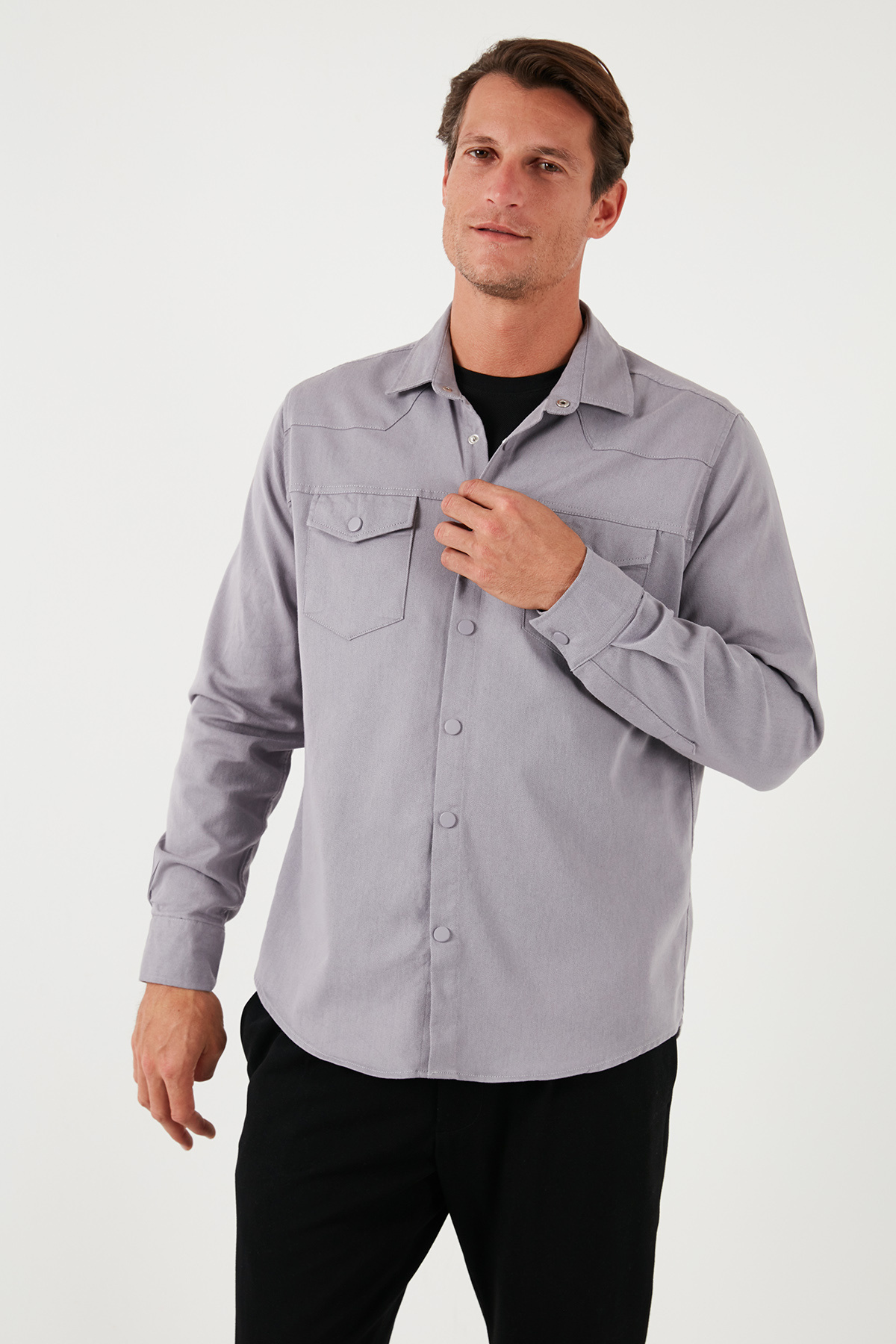 پیراهن مردانه نخی سایز معمولی دو جیب CF24W116927