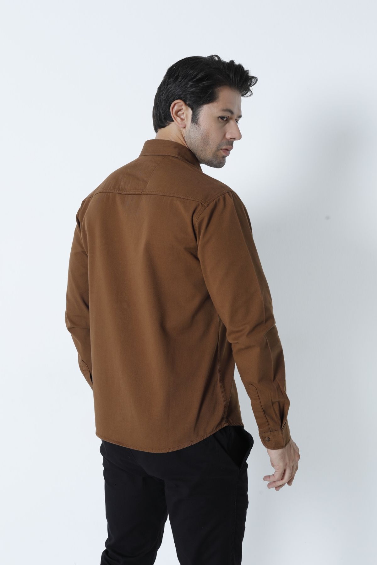 پیراهن مردانه پاییزی/زمستانی نخی قهوهای سایز معمولی با دو جیب