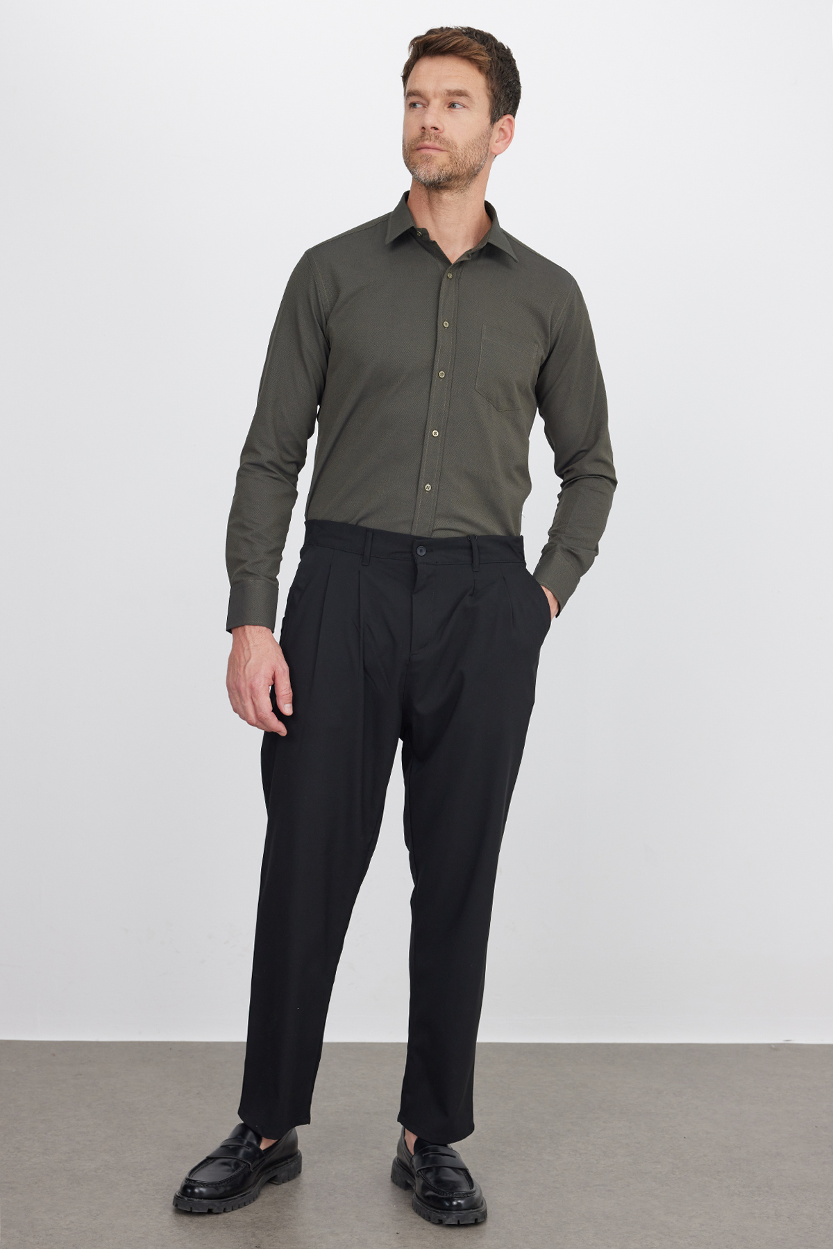 https://www.trendyol.com/tudors/erkek-regular-fit-klasik-kesim-pamuklu-tek-cepli-armurlu-haki-gomlek-p-855797782