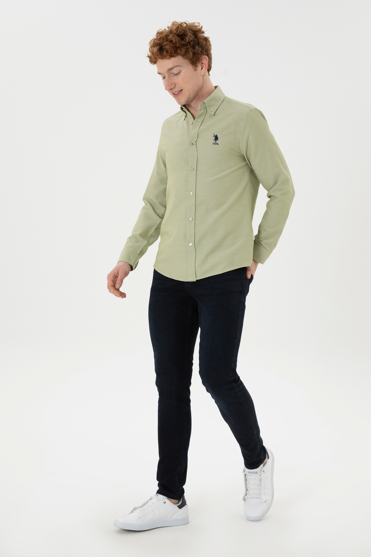 پیراهن یو اس پولو سبز آستین بلند منسوجات | | نمایندگی یو اس پولو