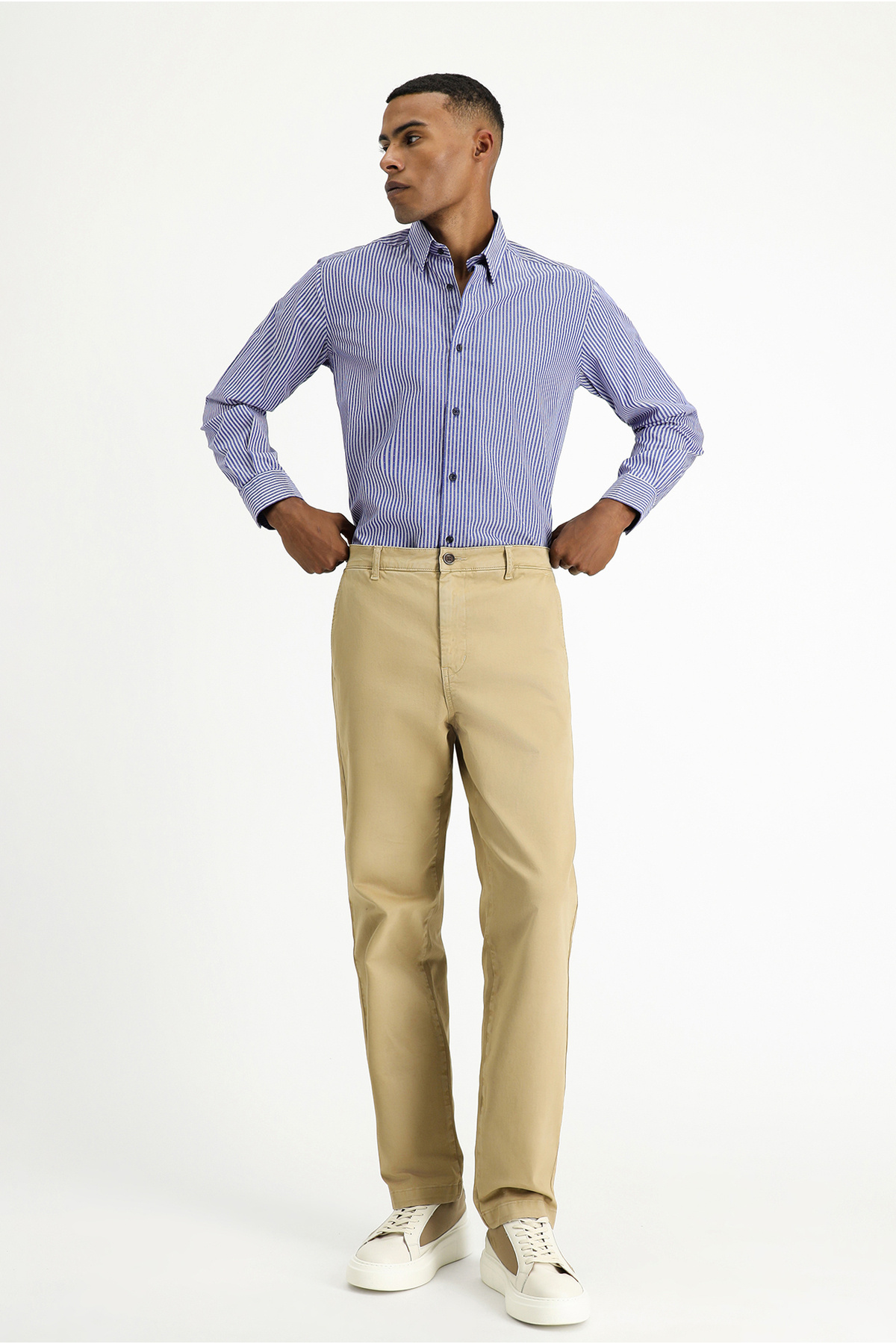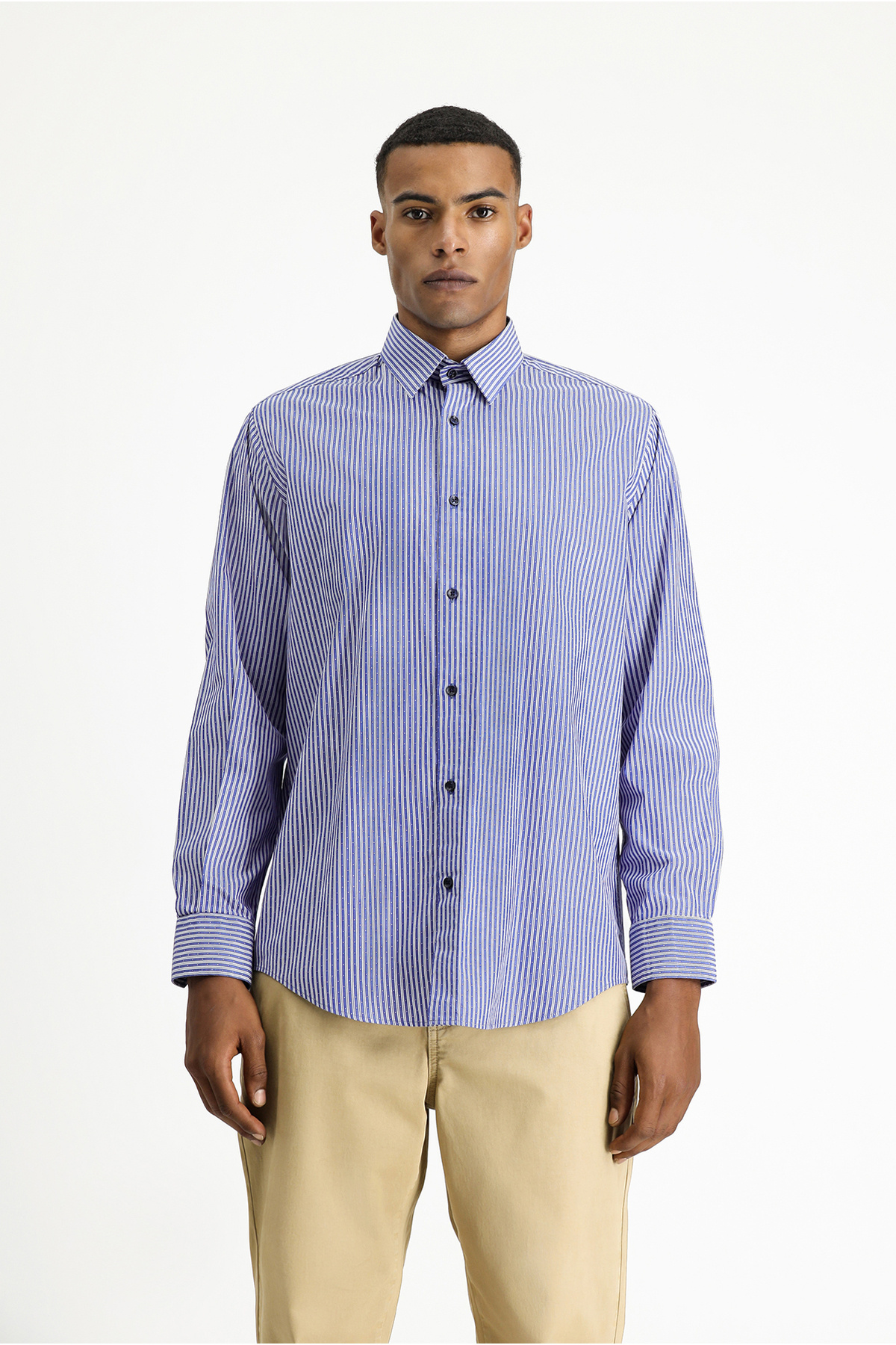پیراهن نخی راه راه کلاسیک آستین بلند