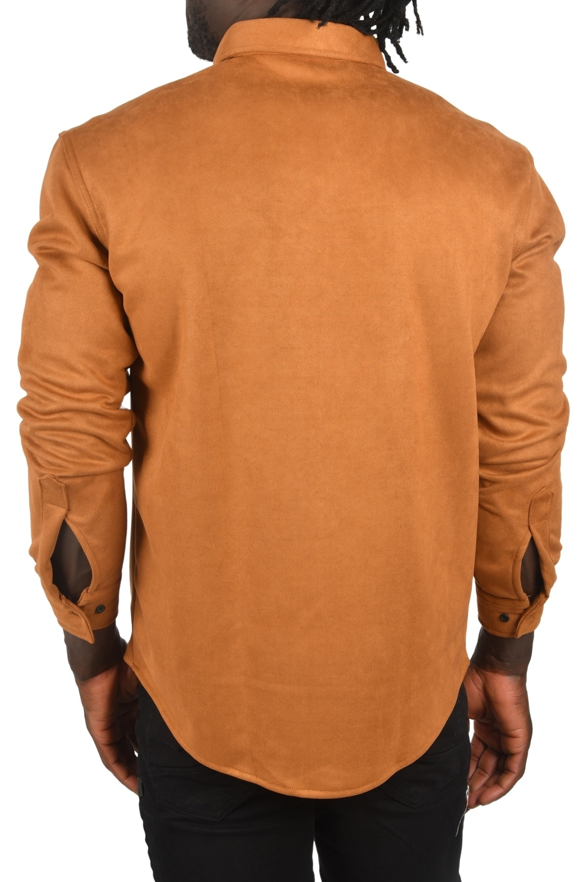 پیراهن مردانه فصلی بدون جیب، دکمهدار، لیکرای قهوهای روشن، بدون چروک، جنس جیر، مدل اسلیم فیت، کد ۲۵۰۰۵۵۶