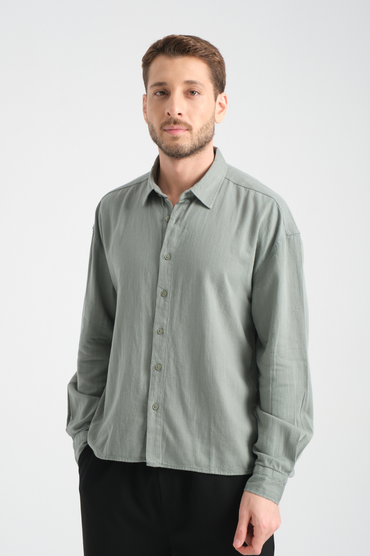 پیراهن خاکی آستین بلند مخلوط لینن | | نمایندگی