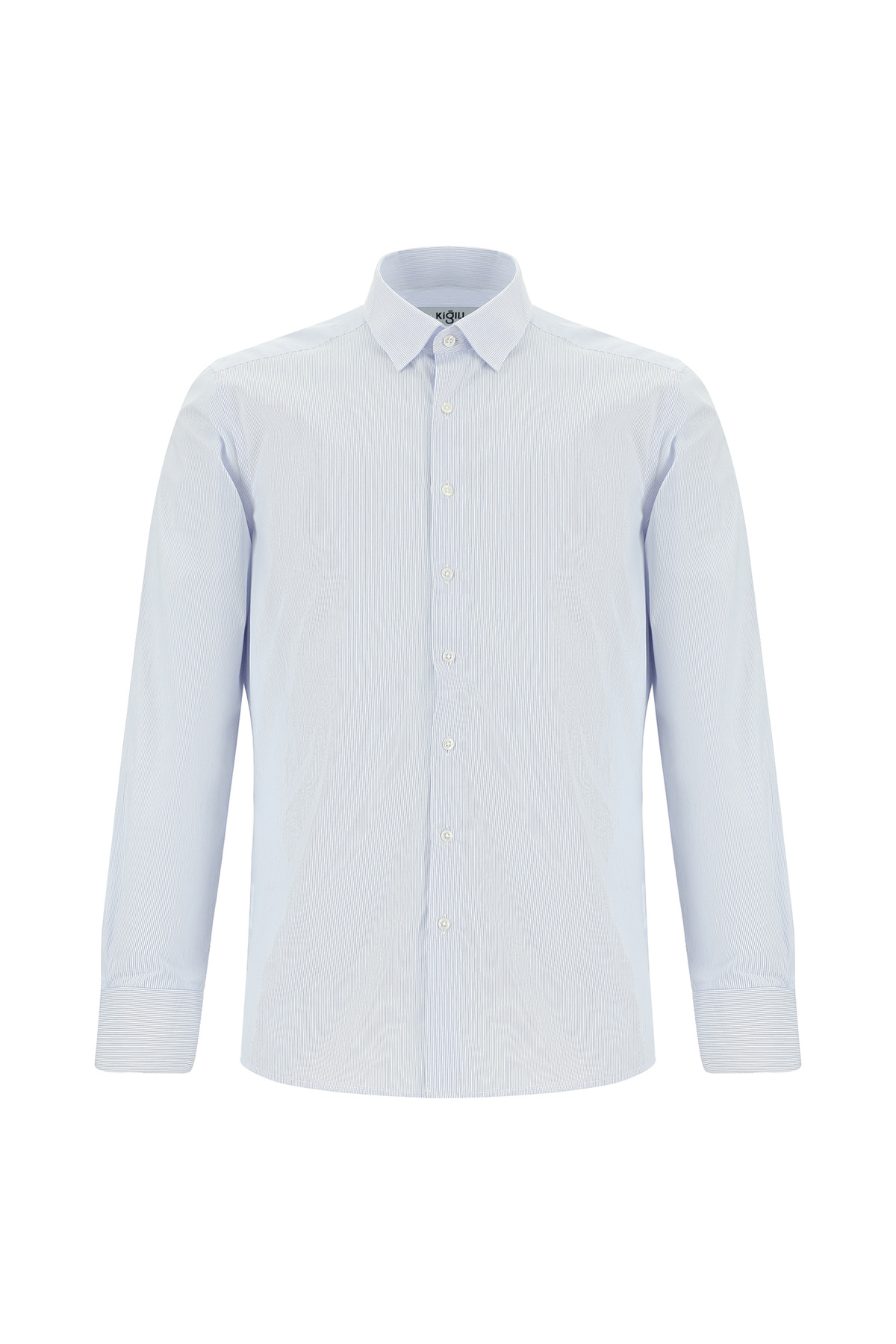 پیراهن کلاسیک راه راه نخی آستین بلند اسلیم فیت، باریک و مناسب