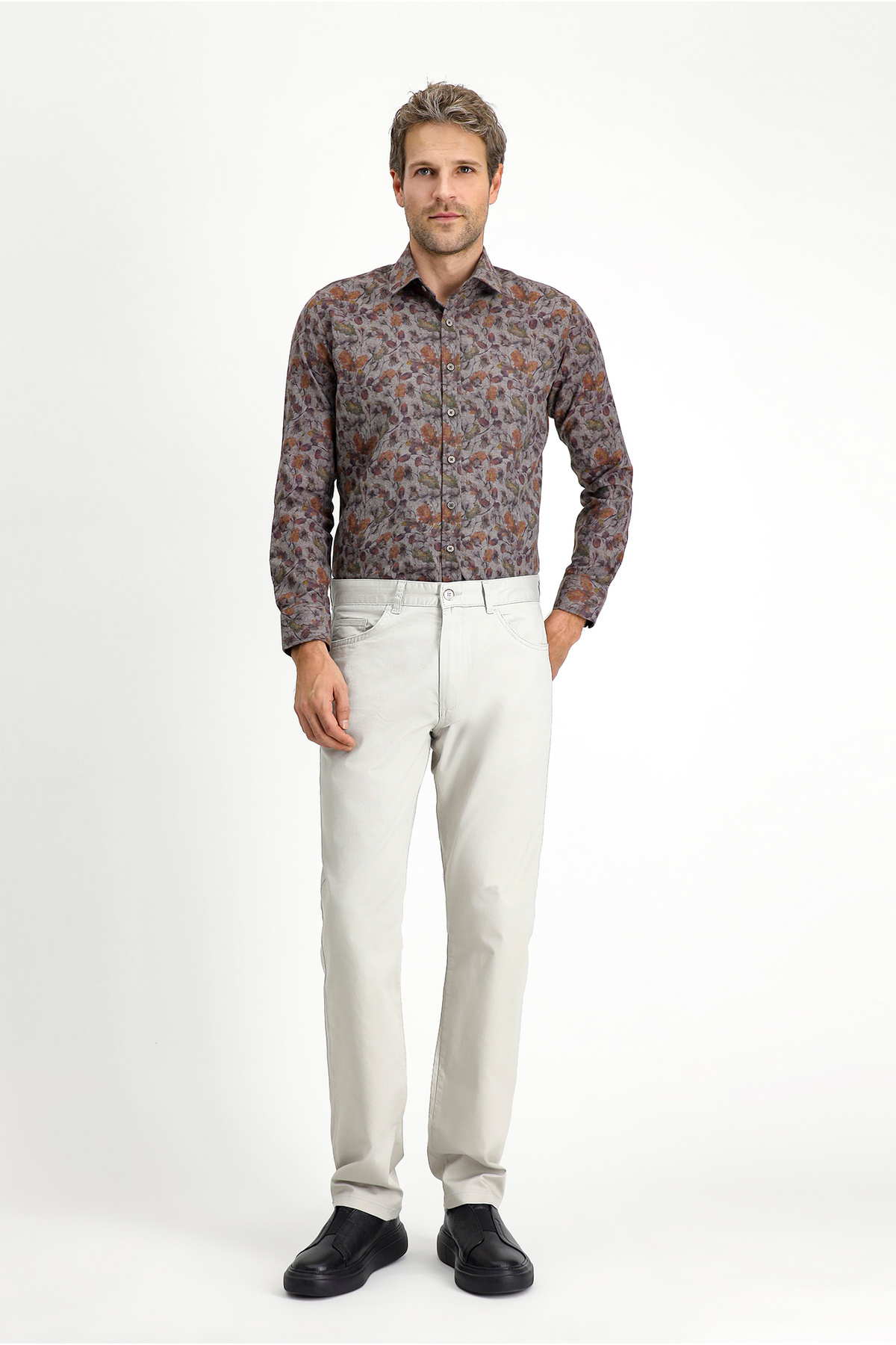 پیراهن نخی آستین بلند، باریک، خوشدوخت، طرحدار، اتوکشی آسان.