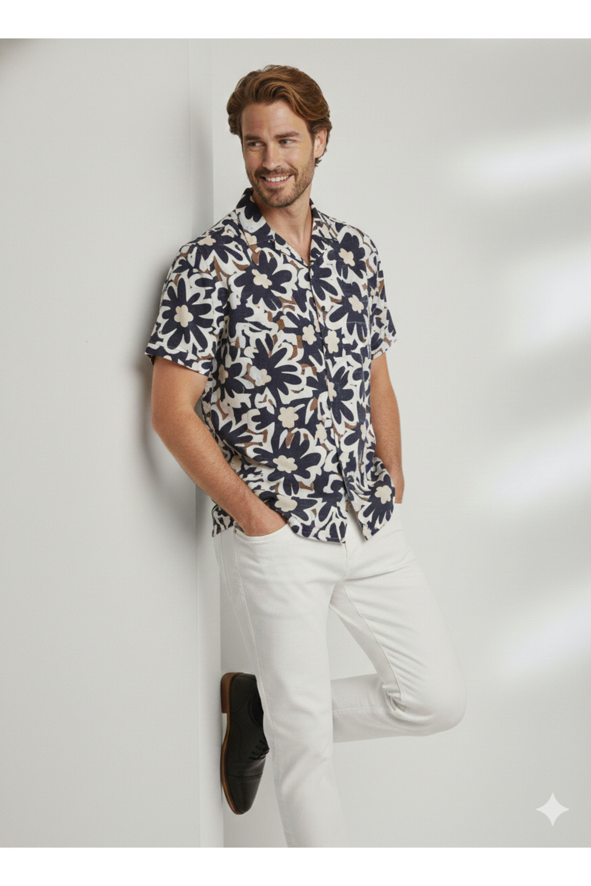 پیراهن هاوایی مردانه J&J JORLUKE مدل Flowers سرمهای کد ۱۲۲۷۱۵۹۷