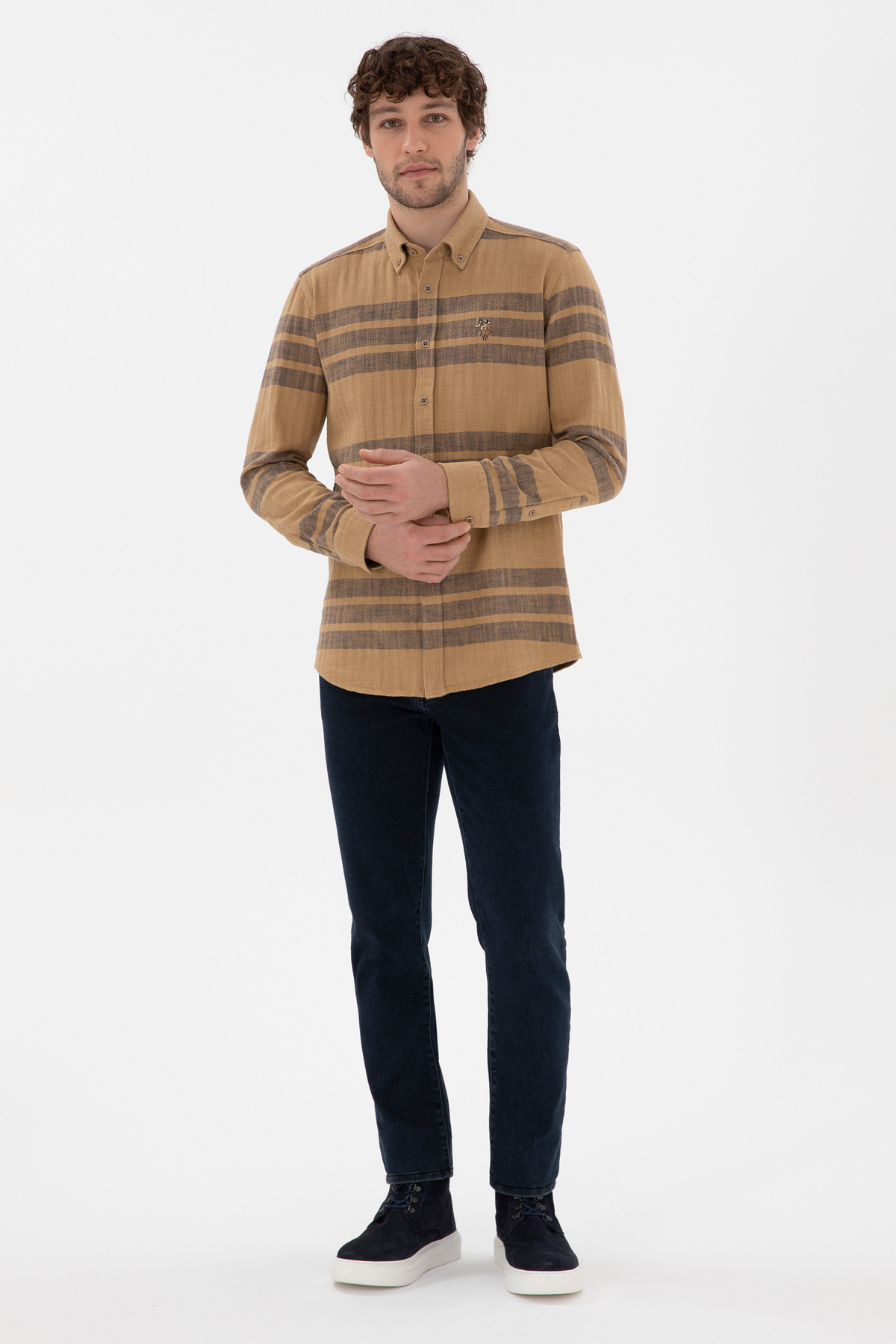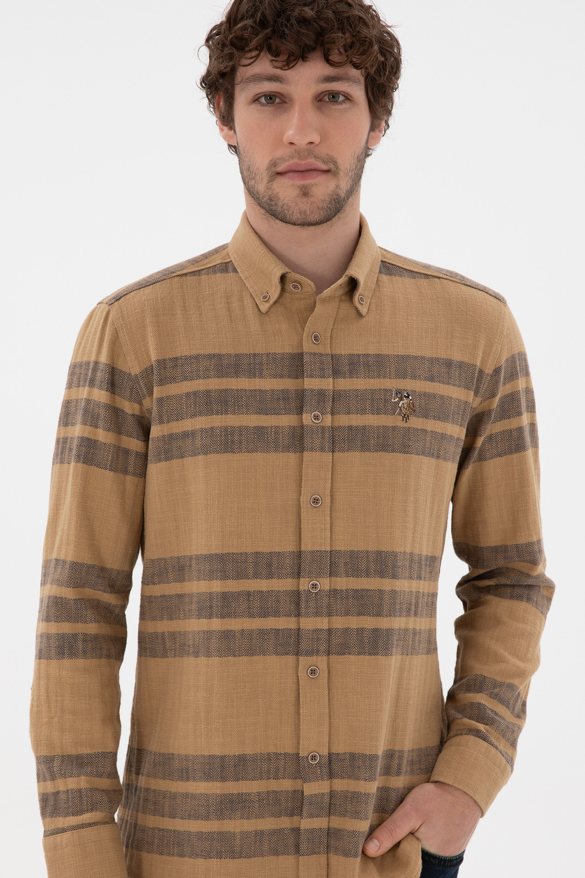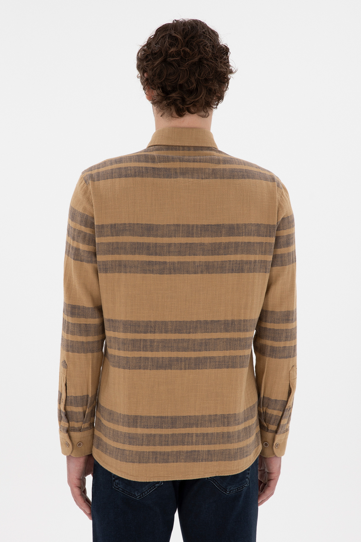 پیراهن آستین بلند مردانه خاکی روشن 50297491-VR183