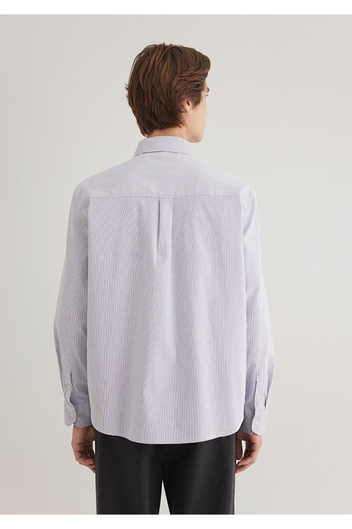 پیراهن سفید راه راه سرمهای، فیت معمولی / برش معمولی 0211147-70497