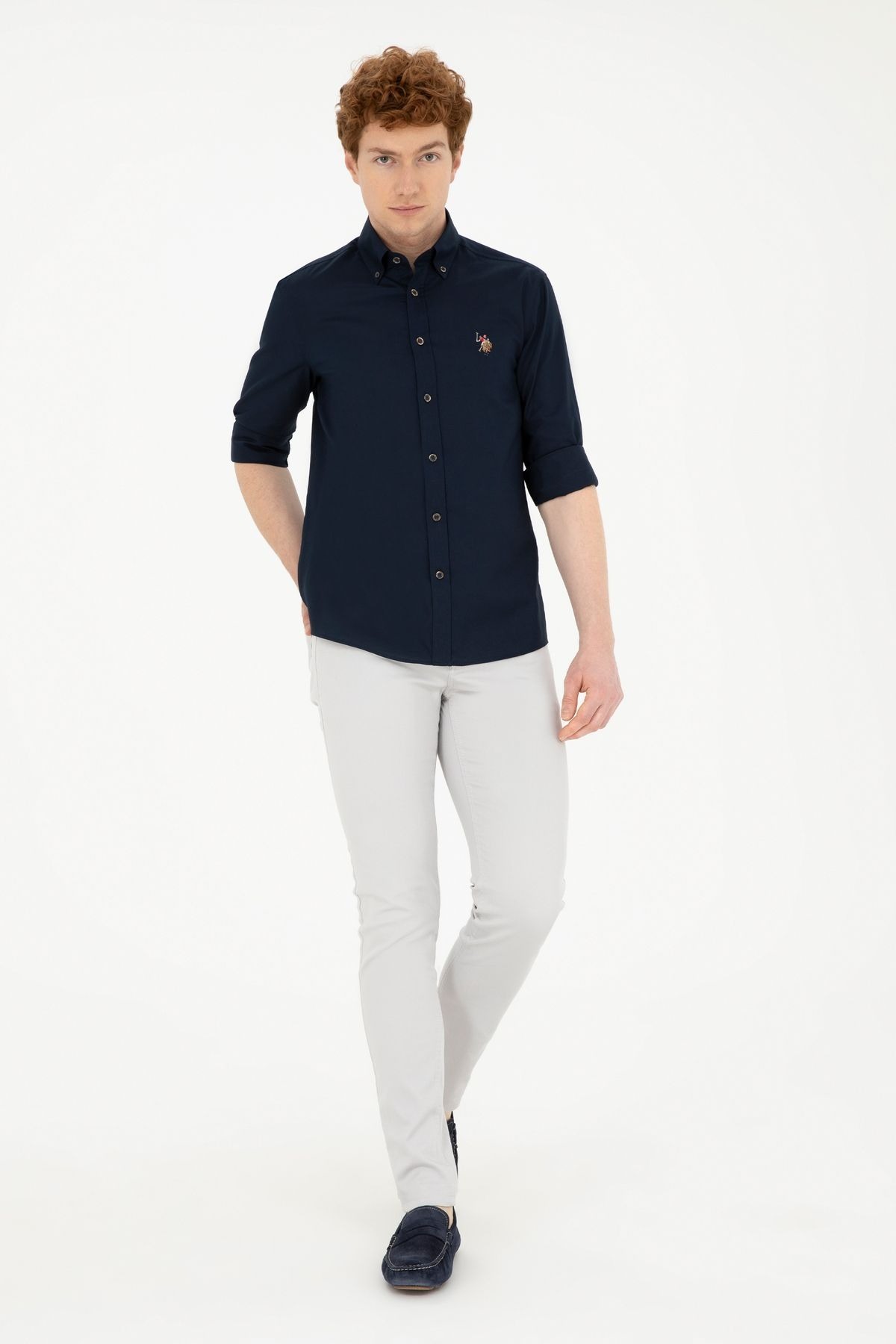 پیراهن یو اس پولو آبی سرمه ای آستین بلند پنبه – پلی استر | | نمایندگی یو اس پولو