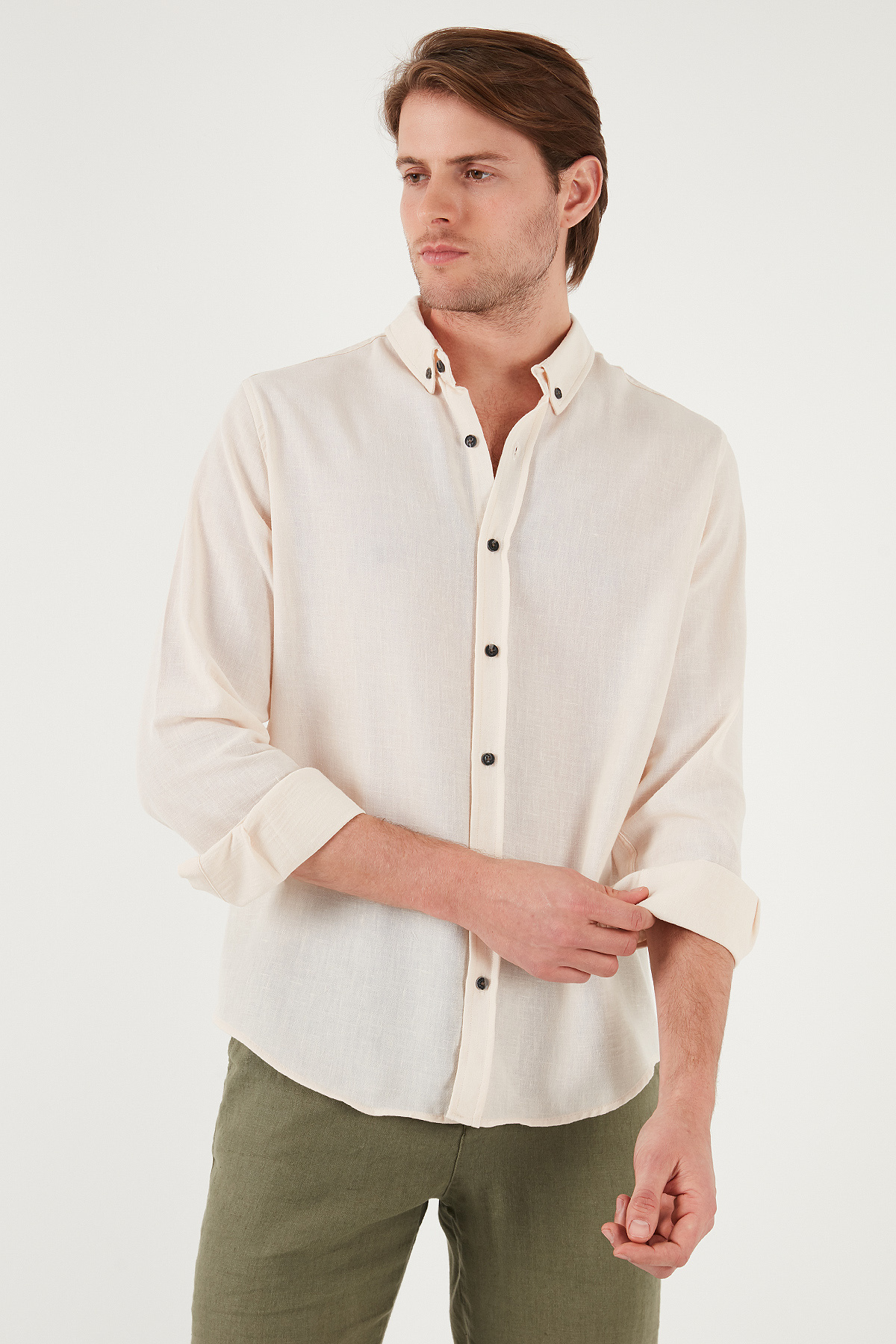 پیراهن مردانه آستین بلند یقه گرد دکمه دار معمولی CF25S116777