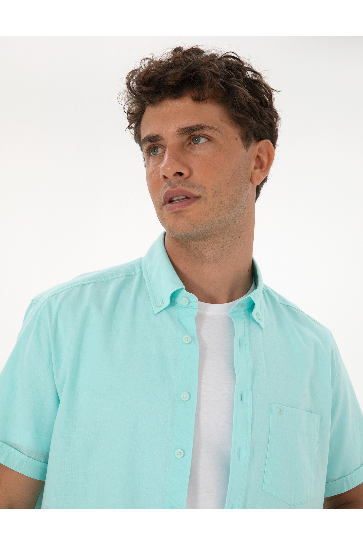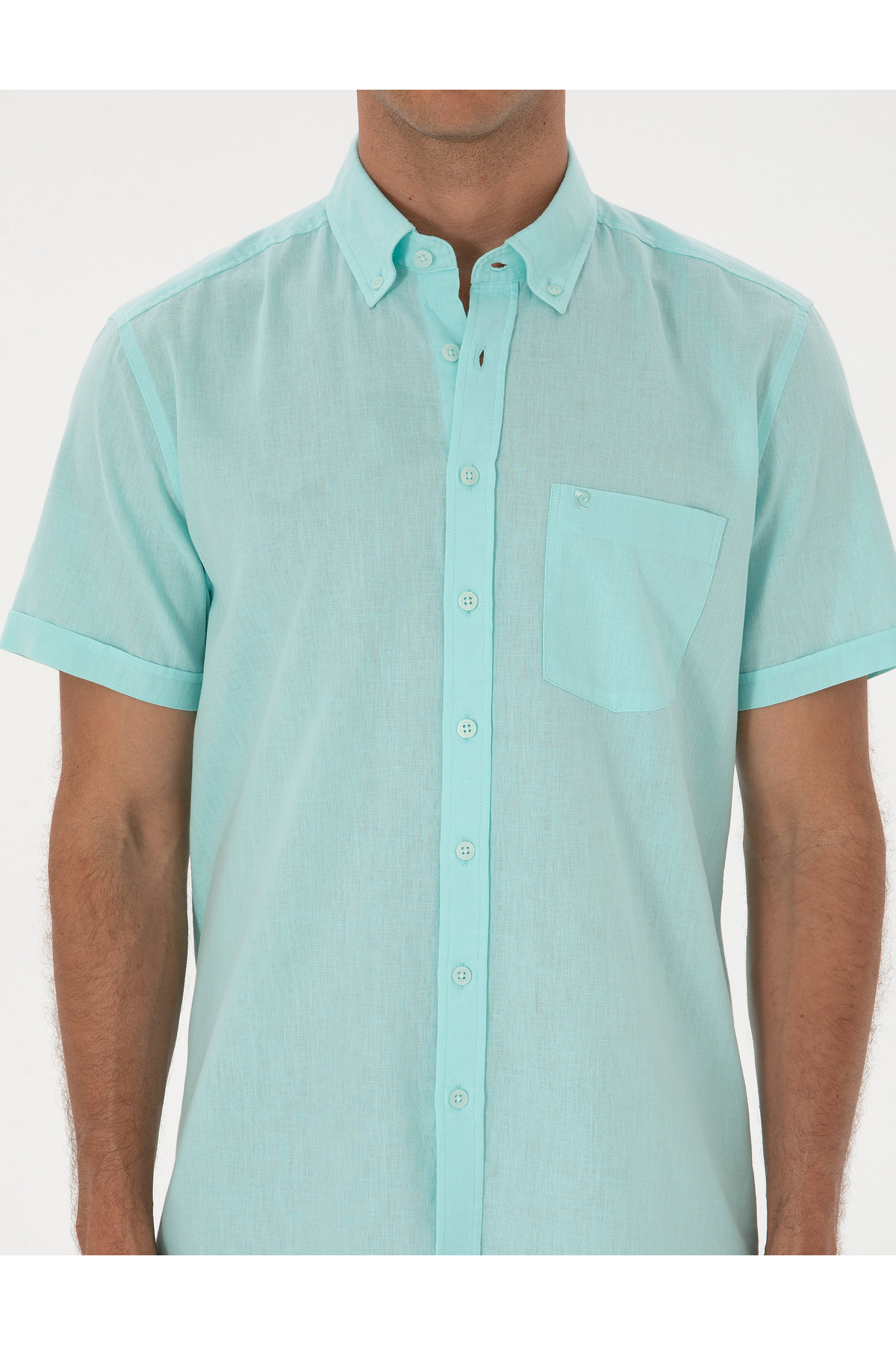 پیراهن آستین کوتاه زنانه طرح کتان سبز فیروزهای کد ۵۰۳۰۳۴۱۸-VR083