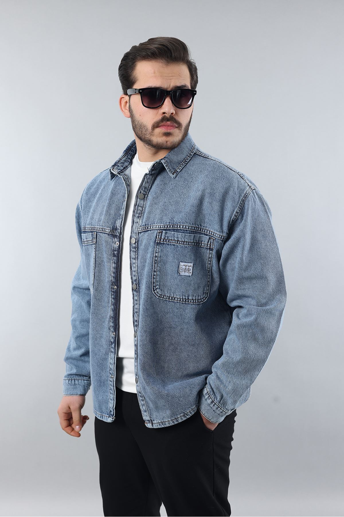پیراهن مردانه گشاد نخی جین به سبک آبی روشن