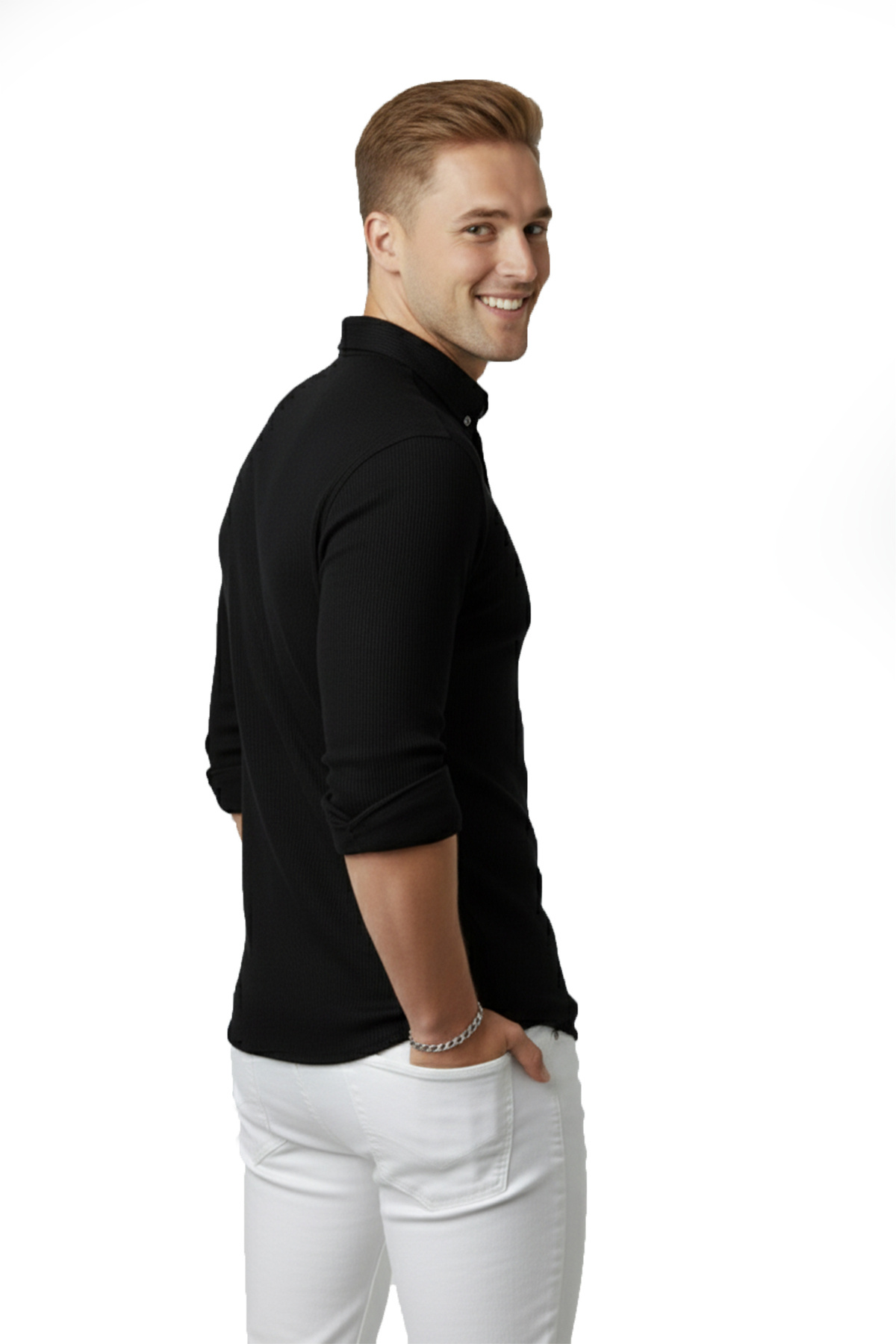 پیراهن مردانه آستین بلند طرحدار مشکی از جنس لیکرا، کد ۲۵۰۰۸۰۵