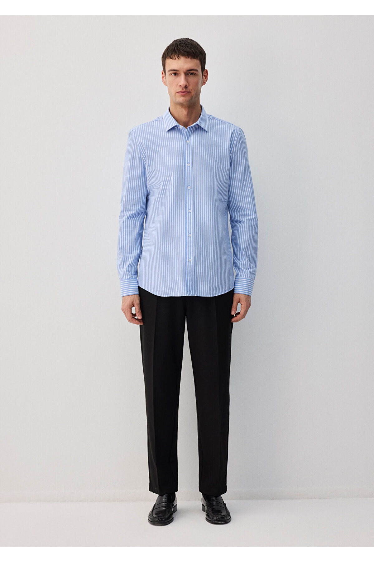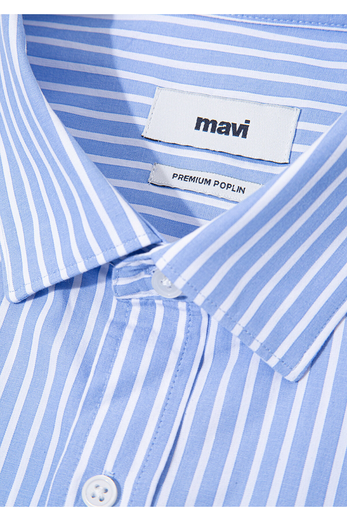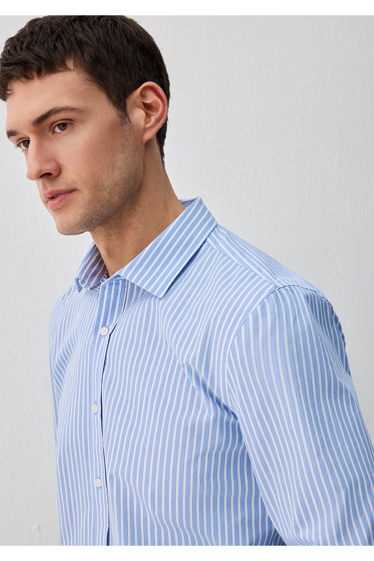 پیراهن آبی راه راه اتوکشی آسان، فیت باریک / برش باریک 0211572-83767