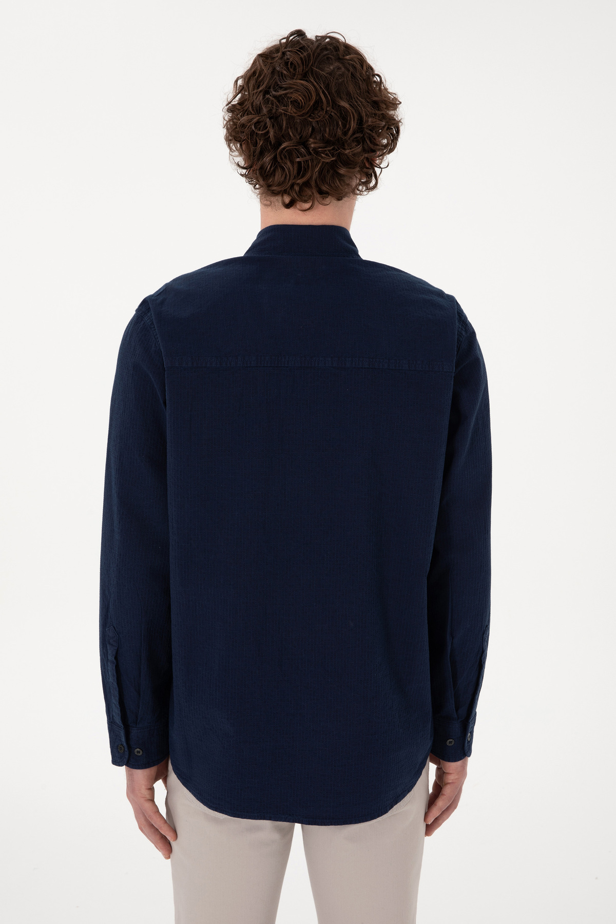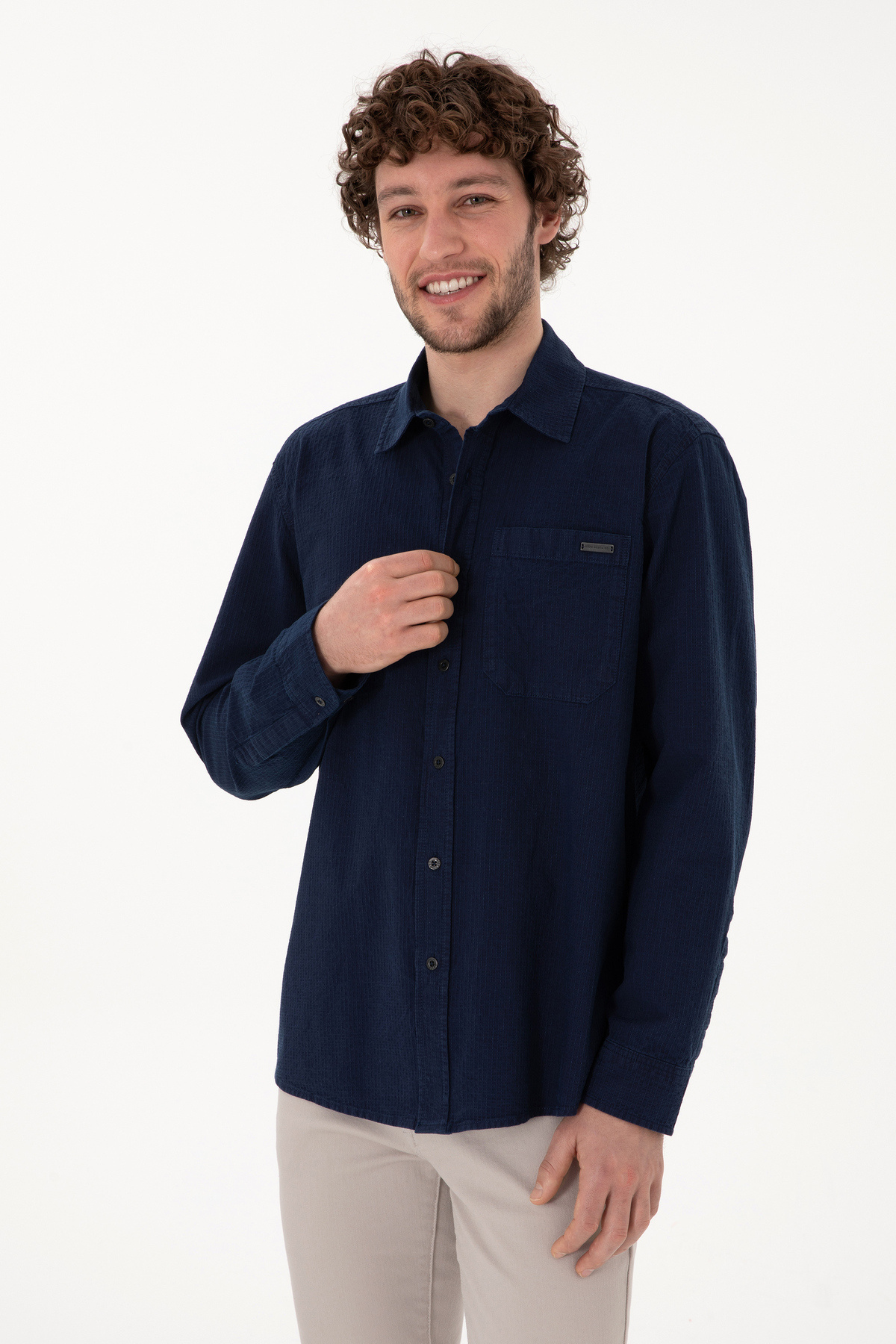 پیراهن یو اس پولو آبی آستین بلند منسوجات | | نمایندگی یو اس پولو