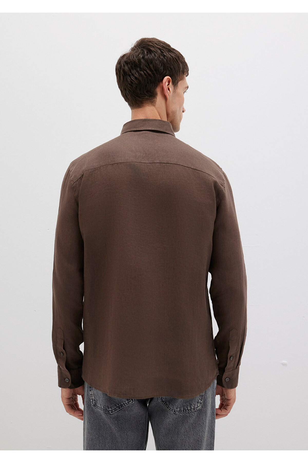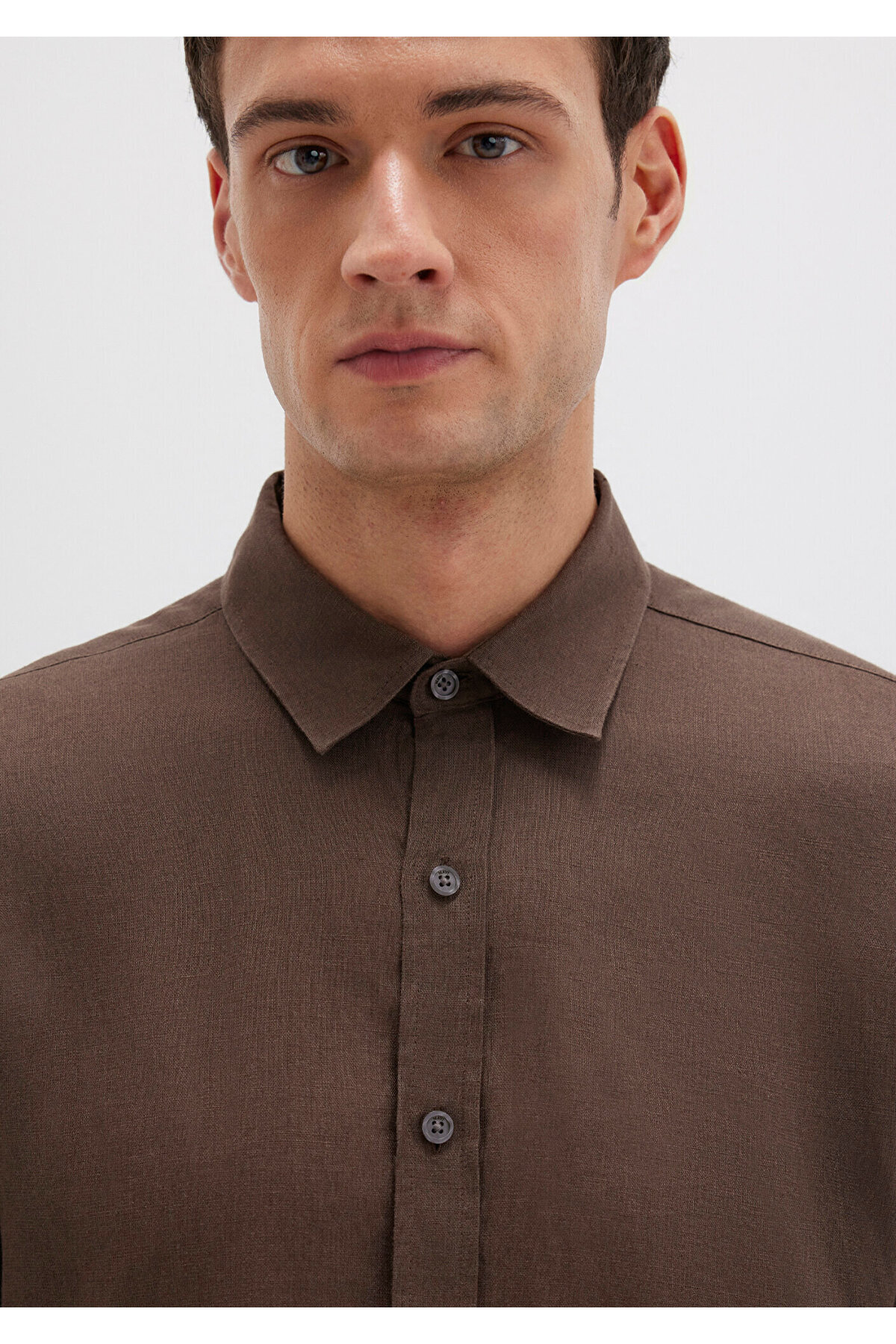 پیراهن کتان قهوهای اسلیم فیت / برش باریک 0211466-87537