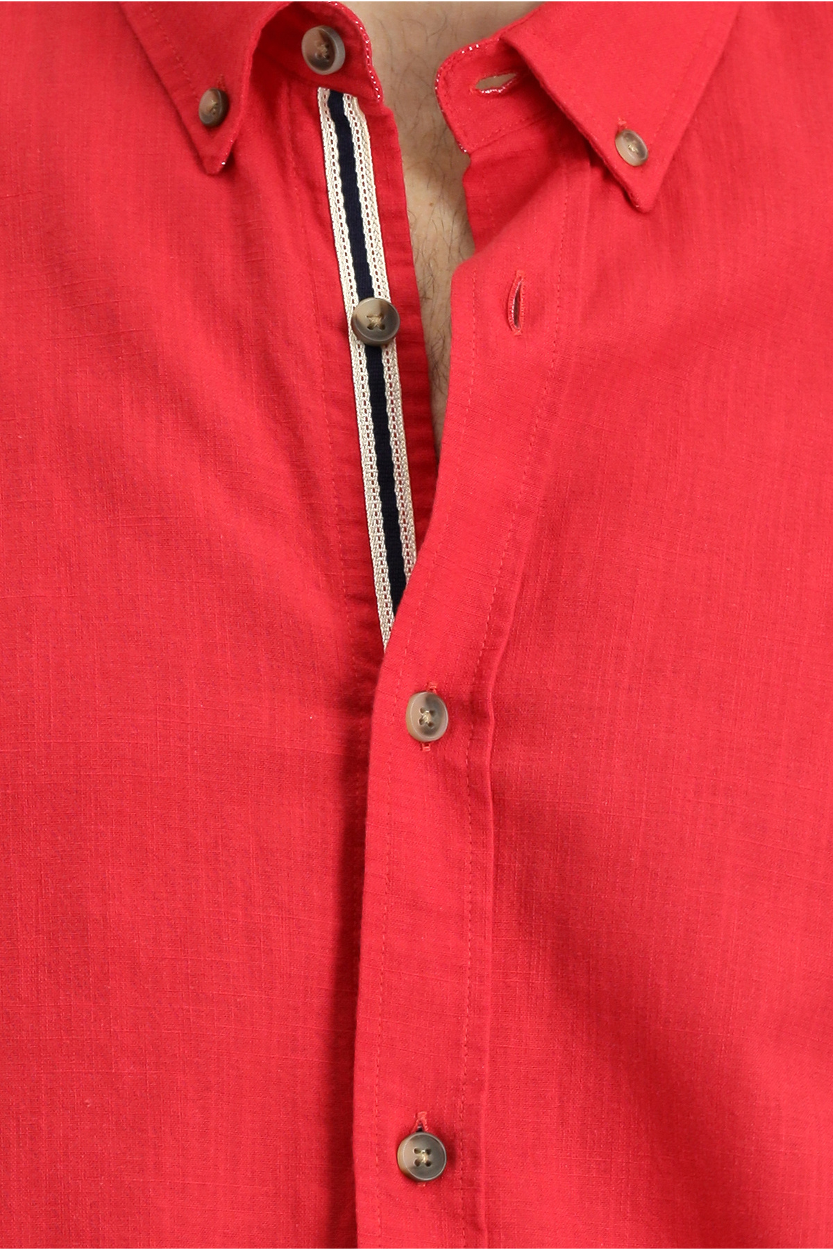 پیراهن نخی اسپرت آستین بلند، یقه دکمهدار، طرح کتان، سایز معمولی