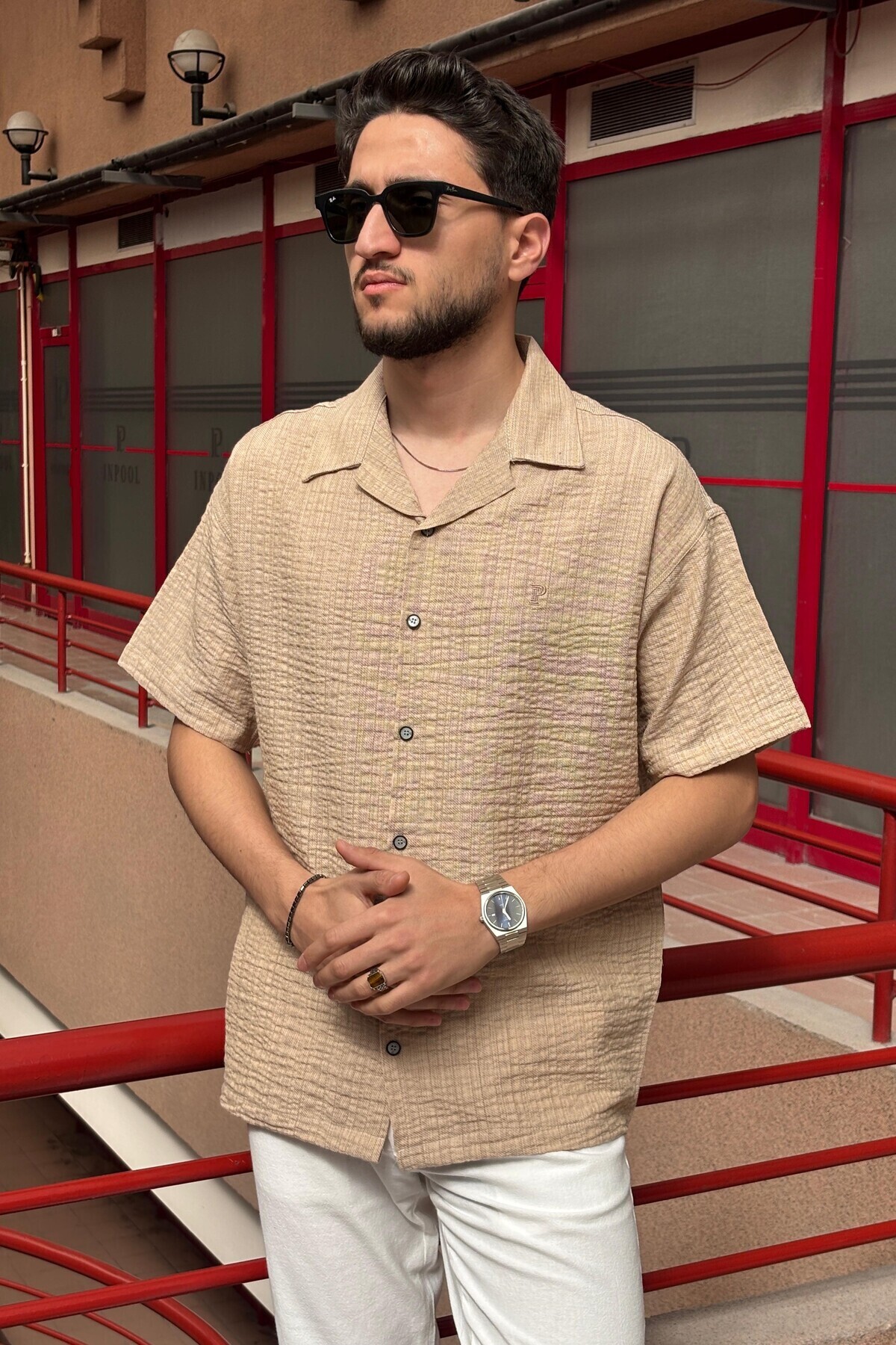 پیراهن مردانه سایز بزرگ، یقه آپاچی، طرح ترکیبی کتان، بافته شده، برجسته G13