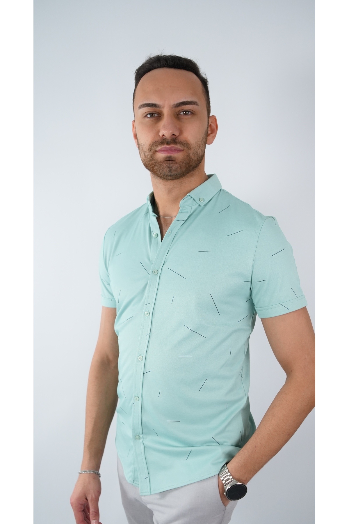 پیراهن مردانه طرحدار آستین کوتاه، سبز.