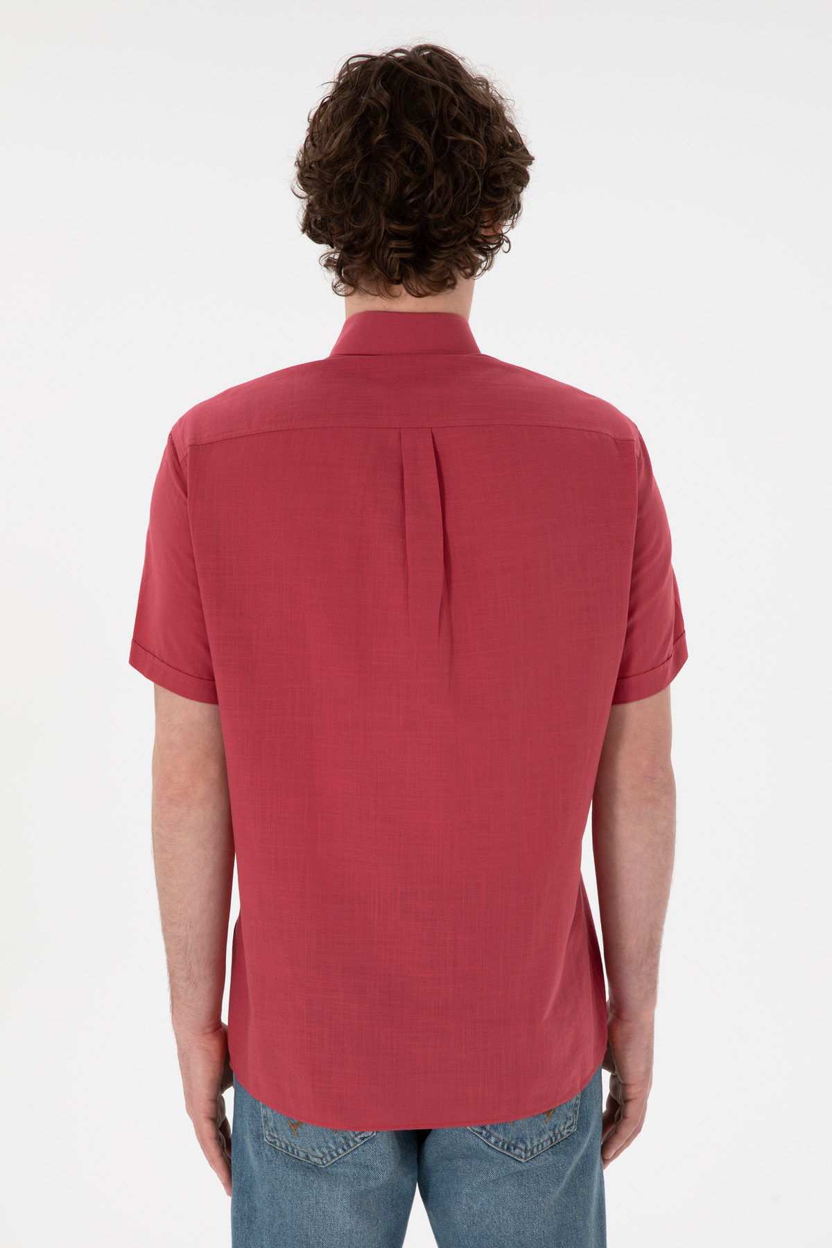 پیراهن آستین کوتاه مردانه قرمز گیلاسی کد ۵۰۳۰۶۳۲۴-VR223