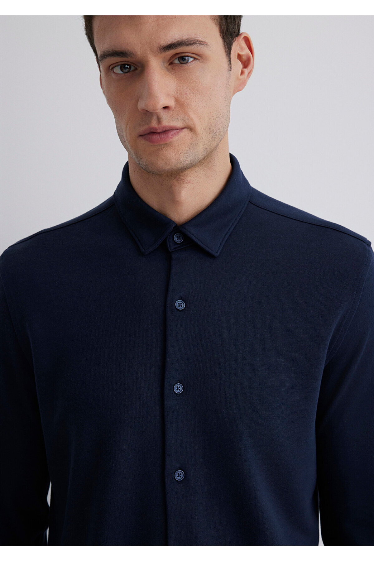 پیراهن سرمهای با طرح ترکیبی لیوسل، اسلیم فیت / برش باریک 0211582-70488
