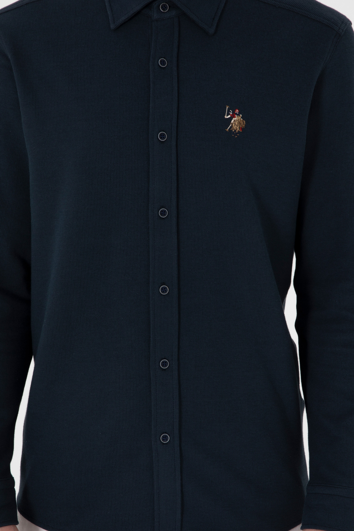 پیراهن یو اس پولو آبی سرمه ای آستین بلند منسوجات | | نمایندگی یو اس پولو