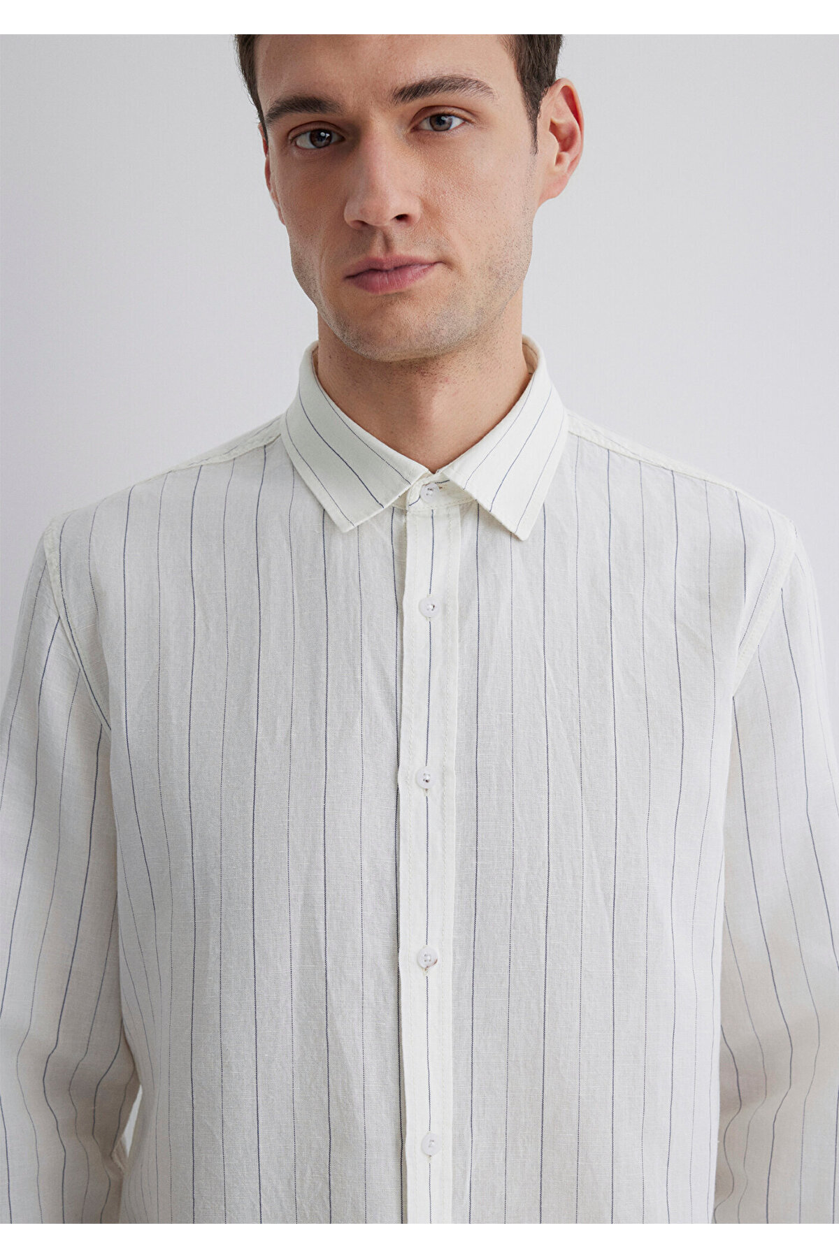 پیراهن سفید راه راه ترکیبی کتان، سایز معمولی / برش معمولی 0211515-620