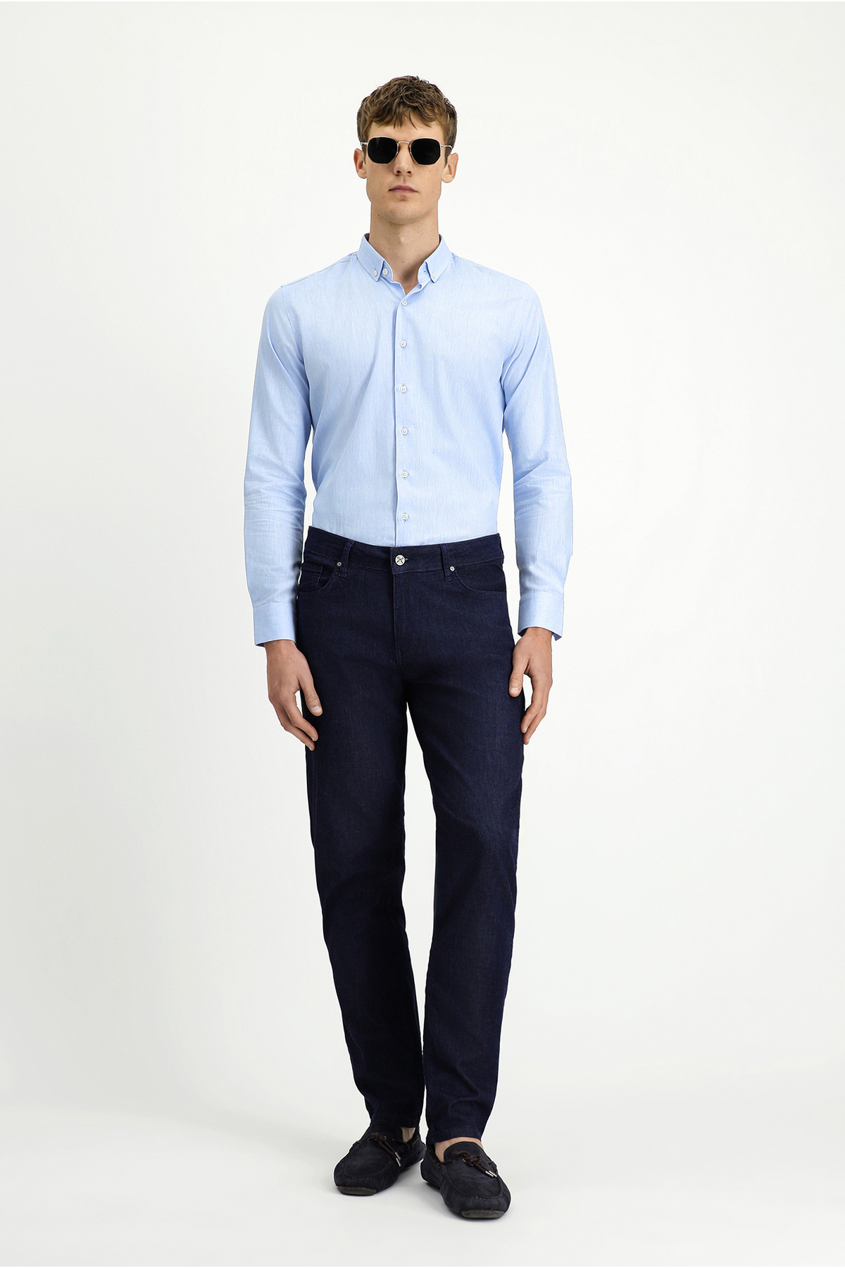 پیراهن کتانی نخی آستین بلند اسلیم فیت باریک