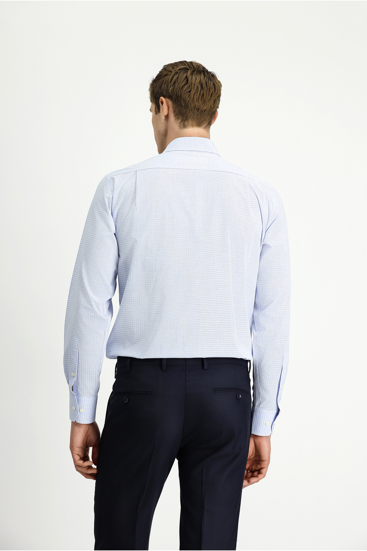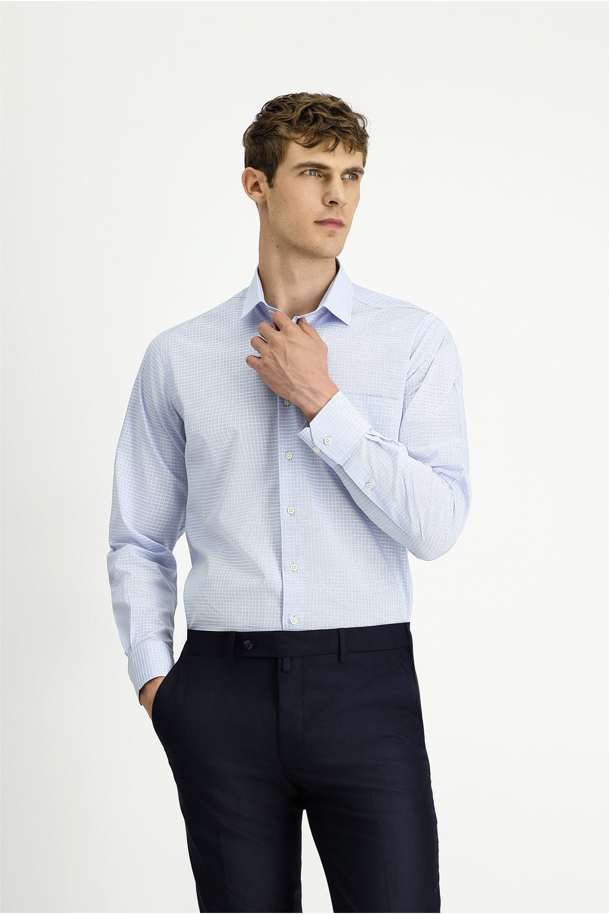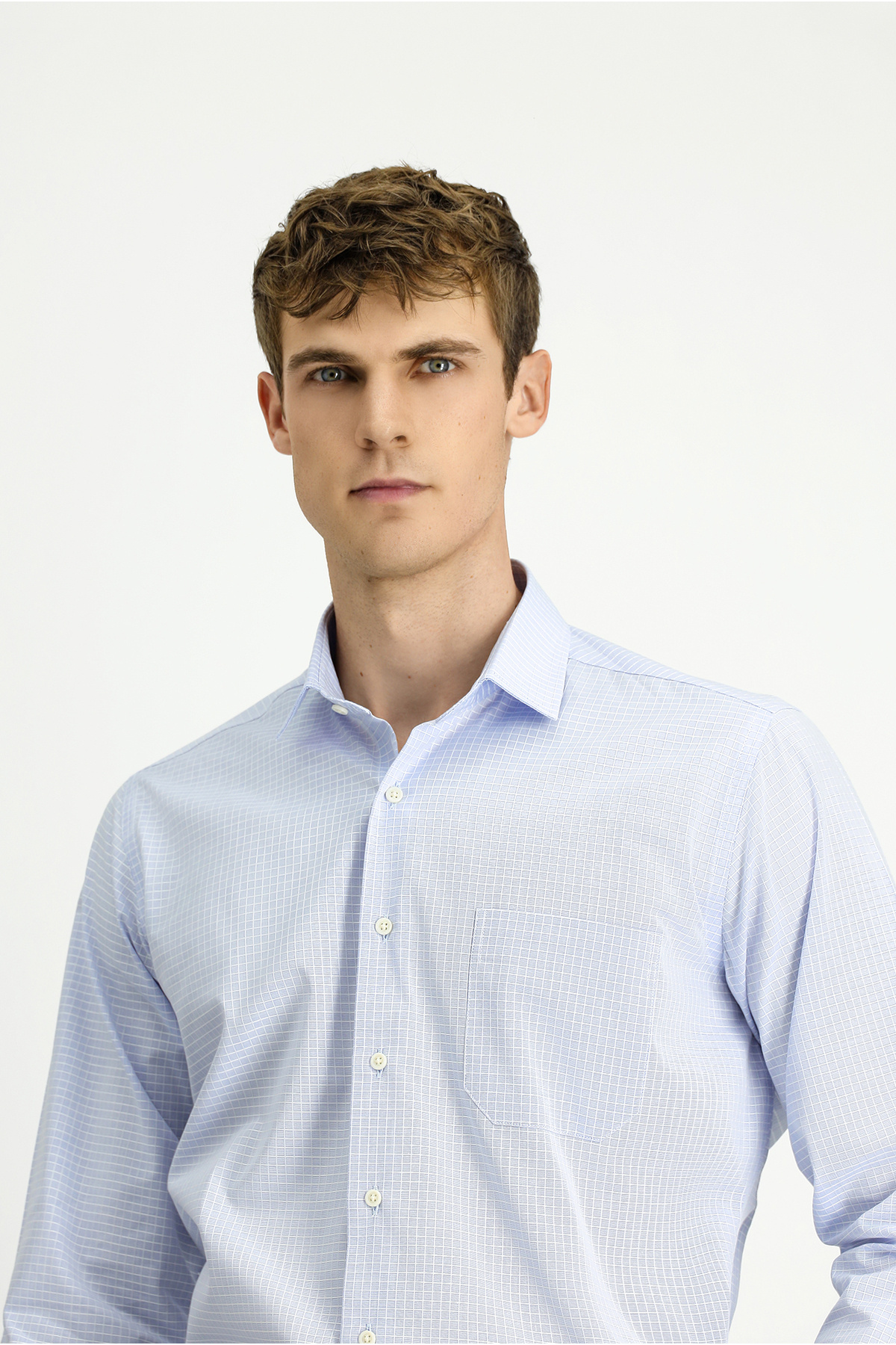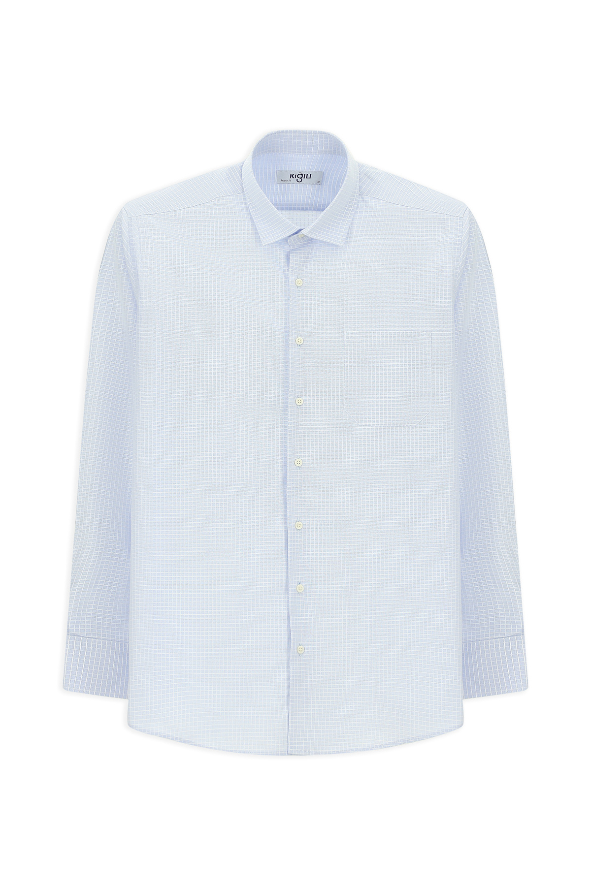 پیراهن نخی چهارخانه کلاسیک آستین بلند