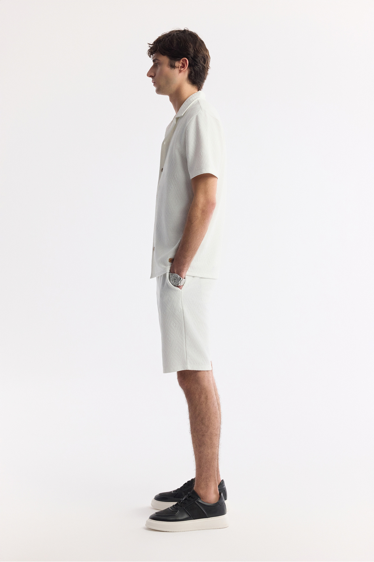 پیراهن مردانه آستین کوتاه یقه گرد طرح ویسکوز ترکیبی ژاکارد مردانه مدل A51Y2144