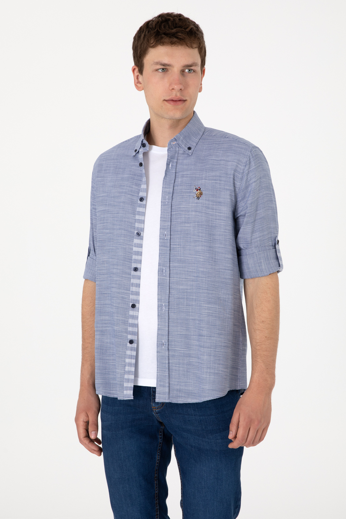 پیراهن یو اس پولو آبی سرمه ای آستین بلند منسوجات | | نمایندگی یو اس پولو